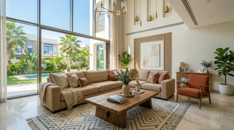 This direction works well because it suits the scale of Dubai villas, ages gracefully, and photographs beautifully for the social media documentation of home life that matters to many UAE families. It also allows you to introduce Arabic design elements at low cost through accessories and textiles rather than expensive statement furniture.