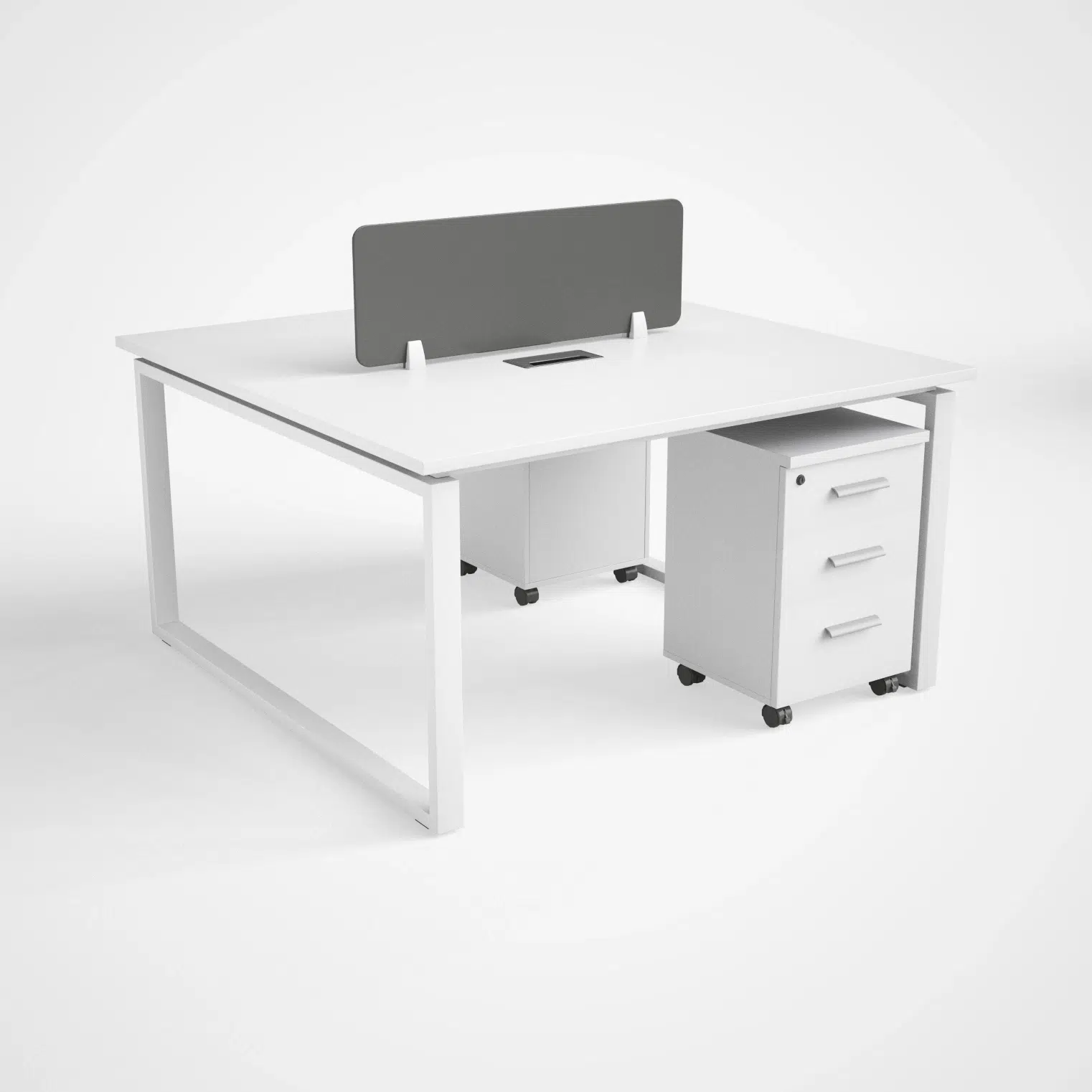 Modern Shared white desk with drawers and screen. Available as a custom-made 2 Person Office Workstation in Dubai, Abu Dhabi, Sharjah, and across the UAE.