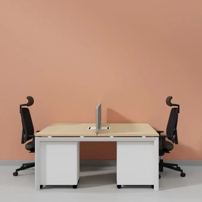 Overall, the 2-Person Office Workstation with Divider is designed for modern offices that require shared seating with clear separation. It allows two users to work comfortably at the same time. Moreover, the front screen partition helps define personal space while keeping the layout open and practical.