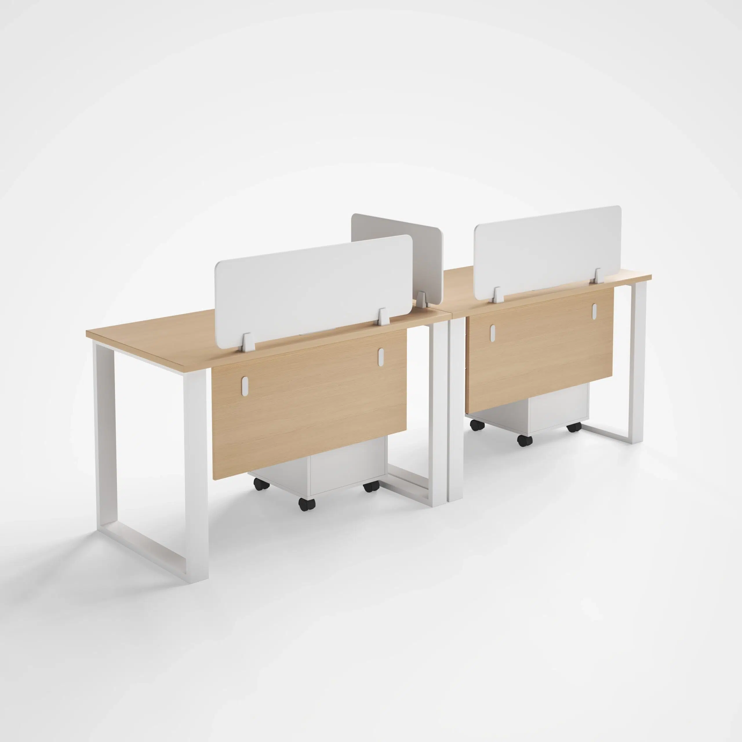 Additionally, the workstation features a total tabletop size of 240 x 60 cm, which fits well in compact office rows. The top is made using 25mm E1 grade particle board for steady daily use. Meanwhile, the Oak and White color combination keeps the workstation clean and professional in appearance.