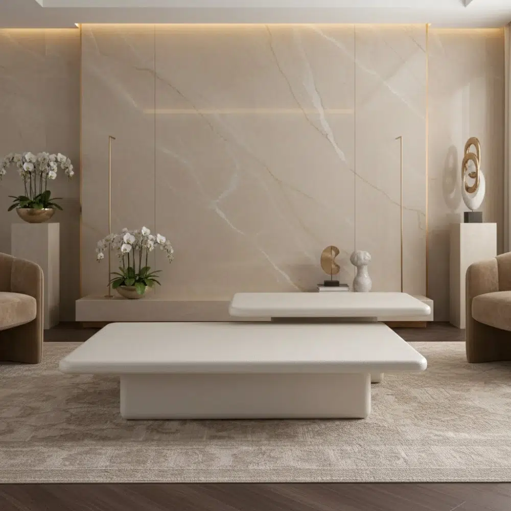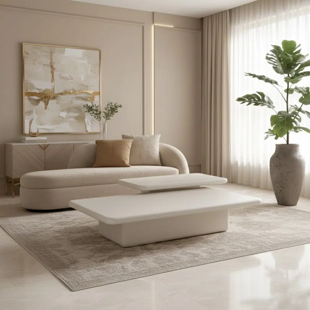 The Aeris 2-Piece Coffee Table Set brings modern harmony and sculptural elegance to your living room. Designed with clean minimalist edges and a luxurious plaster-like finish, this set elevates any UAE home with its sleek low-profile silhouette.