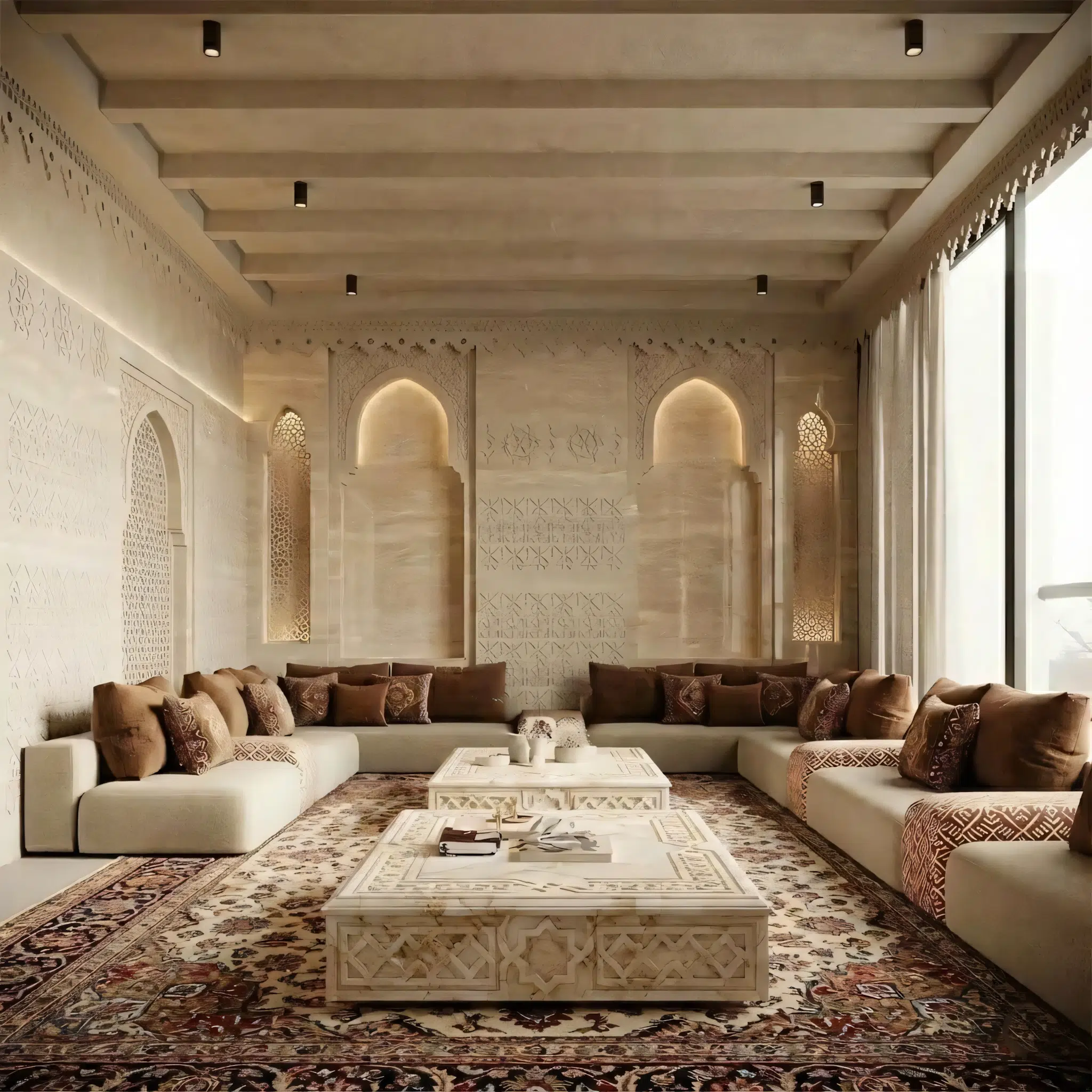Meanwhile, the balance between classic and contemporary design creates lasting appeal. Because of this, the subtle detailing feels elegant, while the grounded structure adds stability. As a result, the majlis environment feels refined, timeless, and enduring.