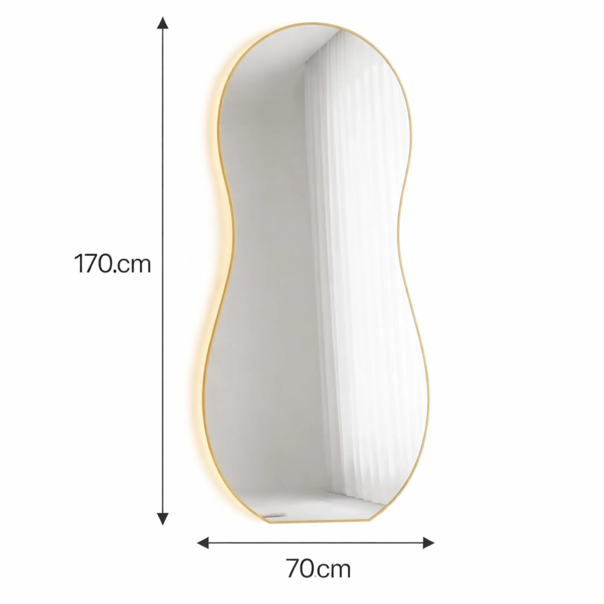Overall, the Arcynea Modern Floor Mirror is designed to add visual depth to modern interiors. Moreover, its tall structure creates balance while keeping the space visually light. Additionally, the soft, curved outline helps the mirror blend naturally into contemporary rooms. Consequently, the mirror works as both a functional and decorative element.