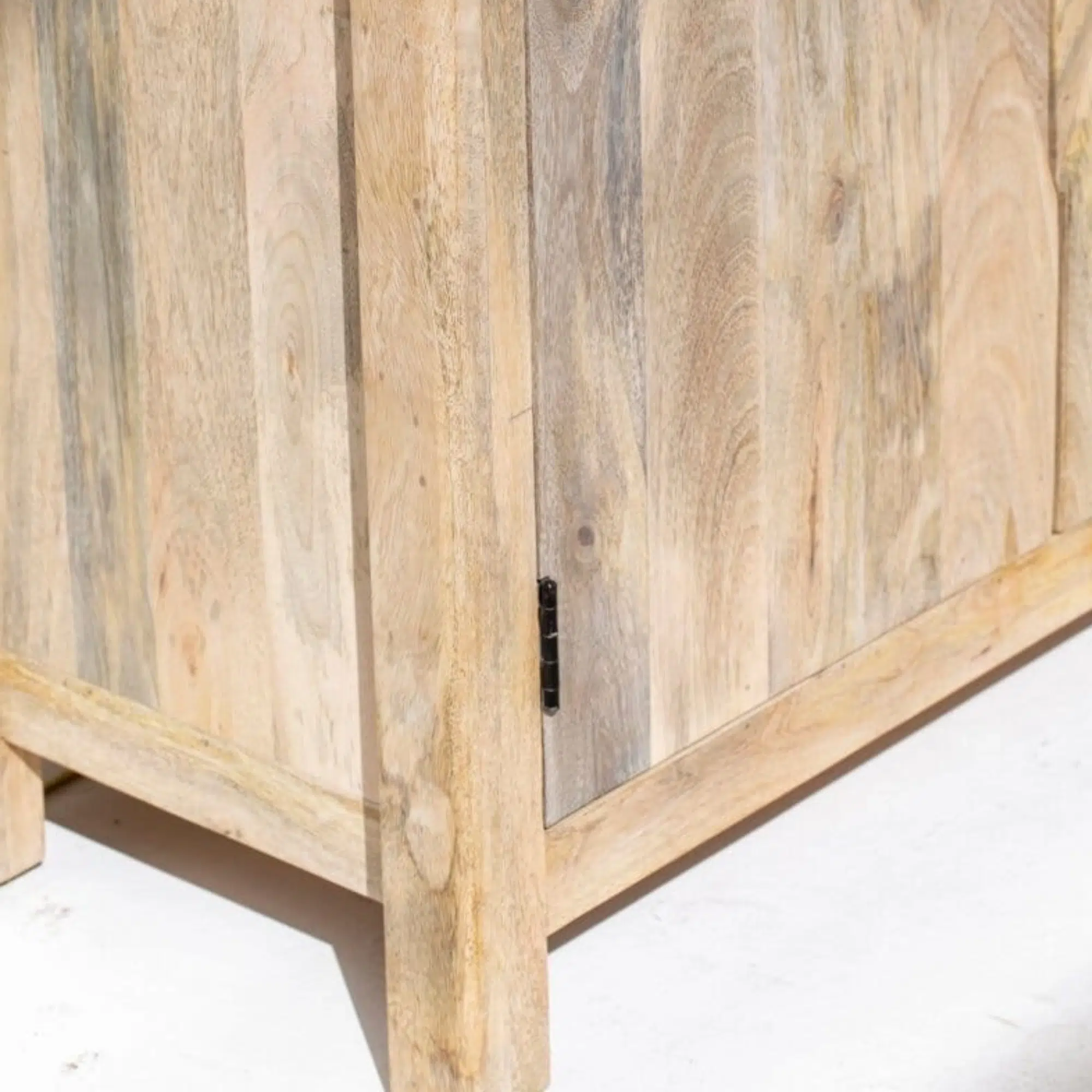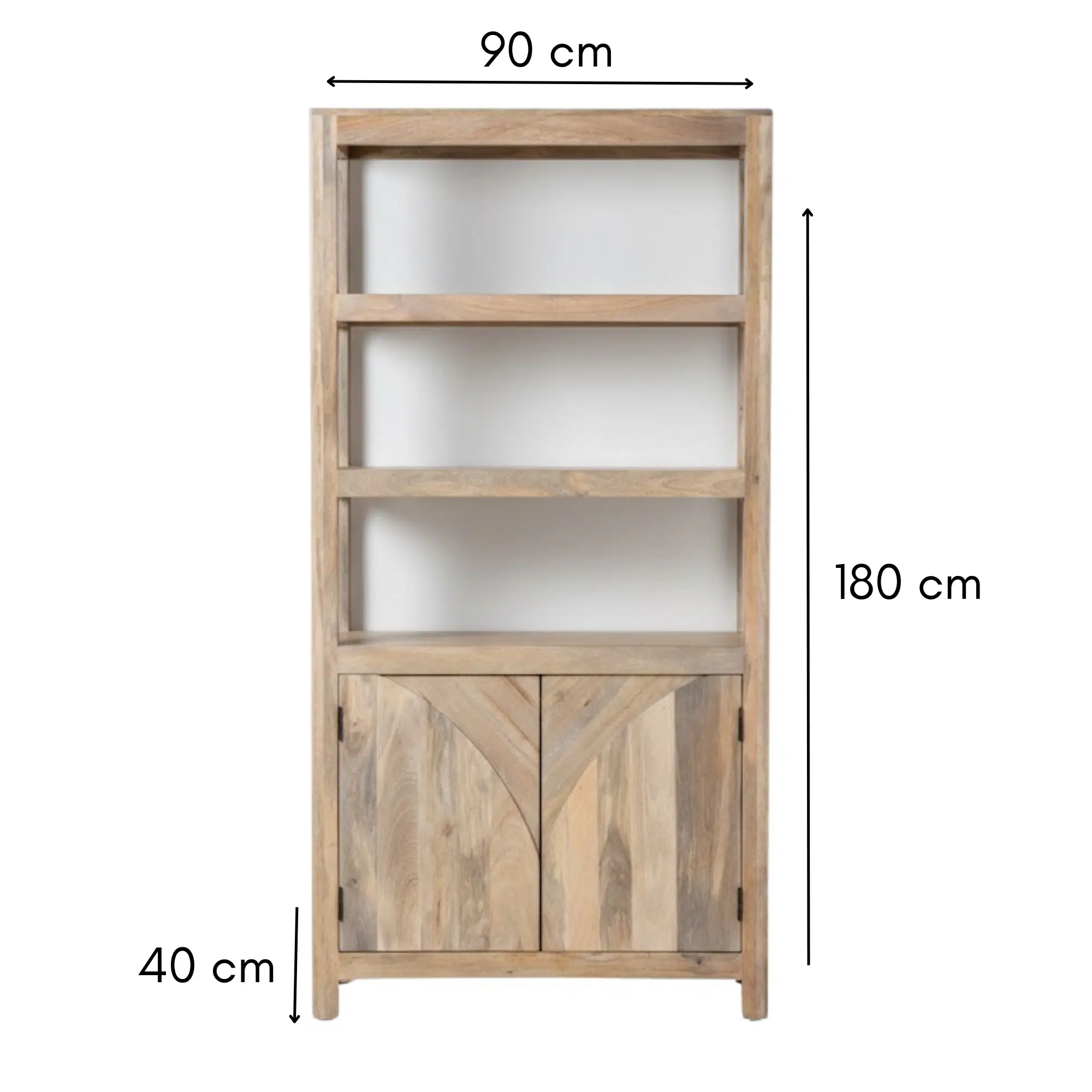 Additionally, the open upper shelving provides accessible display space for books, décor pieces, and everyday essentials. Meanwhile, the half arch design doors add architectural character, creating a distinctive focal point within the cabinet’s structure. Consequently, the unit balances open display and concealed storage in one cohesive design.