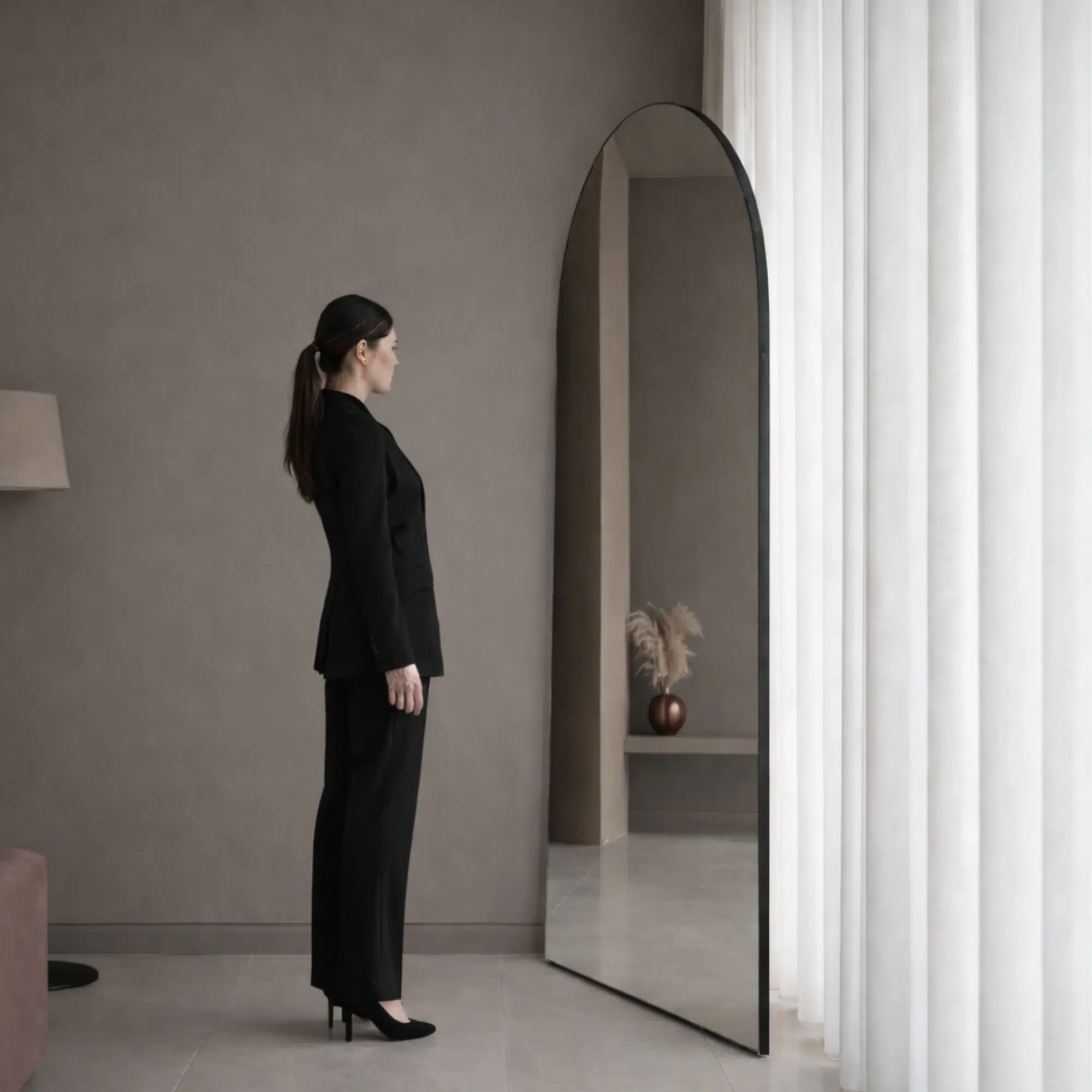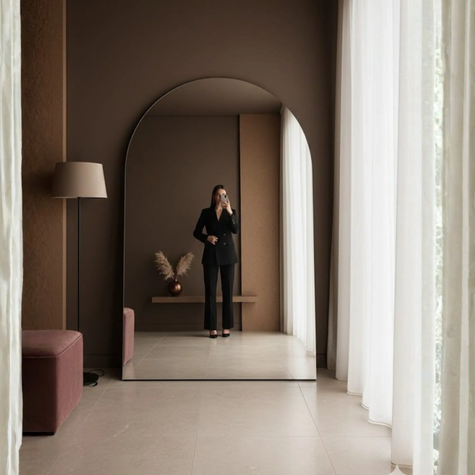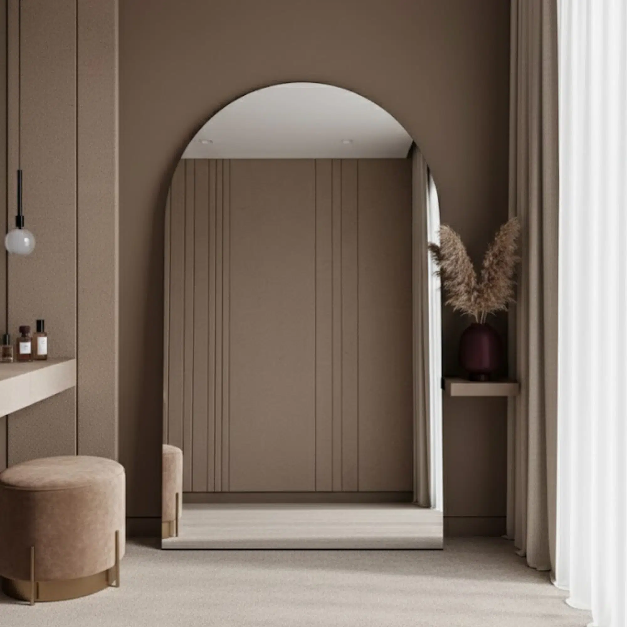 The Aura Grand Arch Full Length Mirror is a statement luxury full body mirror crafted for high-end UAE interiors. With its elegant arched silhouette and generous 200×100 cm size, this arched full length mirror creates a premium, hotel-inspired look ideal for Dubai apartments, Abu Dhabi villas, and Sharjah homes.