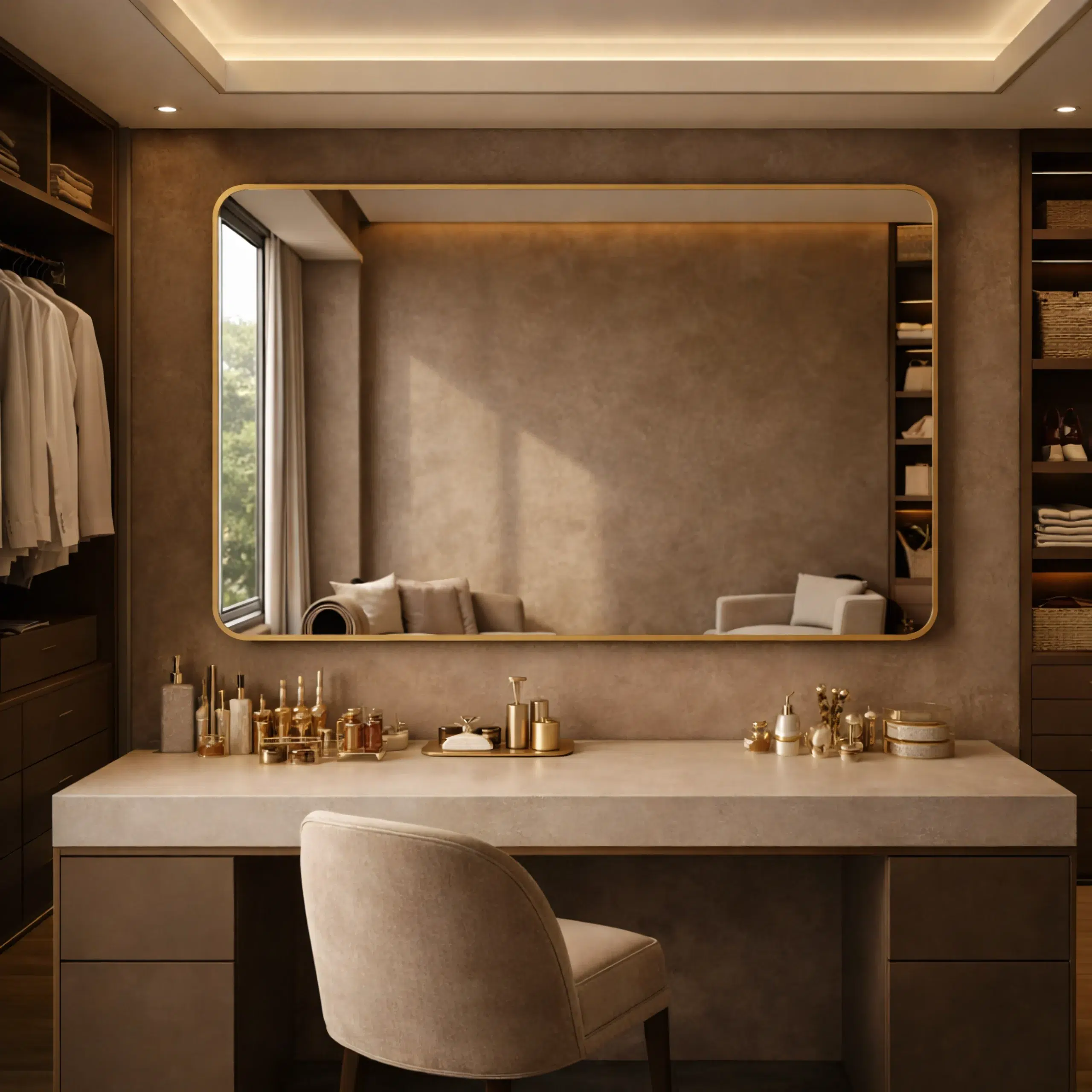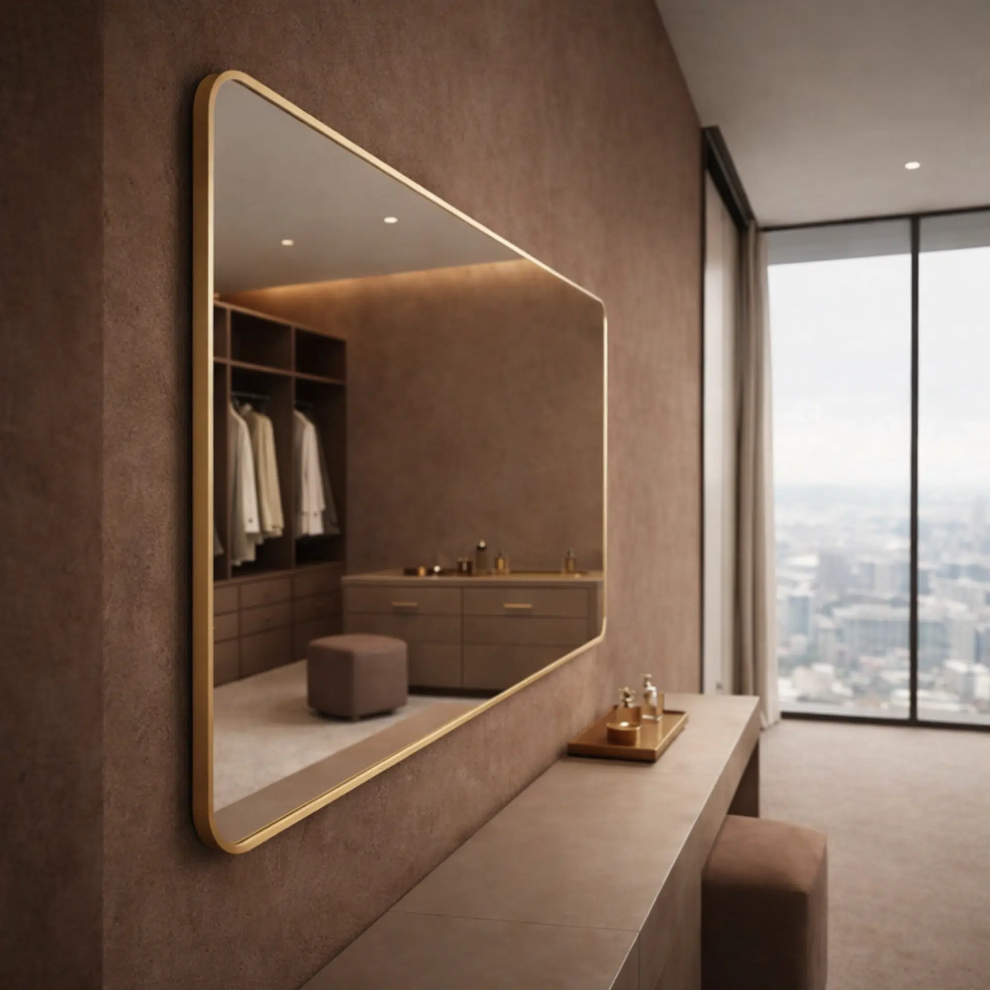 Moreover, the wall-mounted format helps keep interiors open and uncluttered. Additionally, the mirror reflects natural and ambient light across the space. Meanwhile, this reflection improves brightness and visual depth. Consequently, the mirror works well in dressing areas, bedrooms, and refined living spaces. As a result, the proportions suit modern interior layouts.