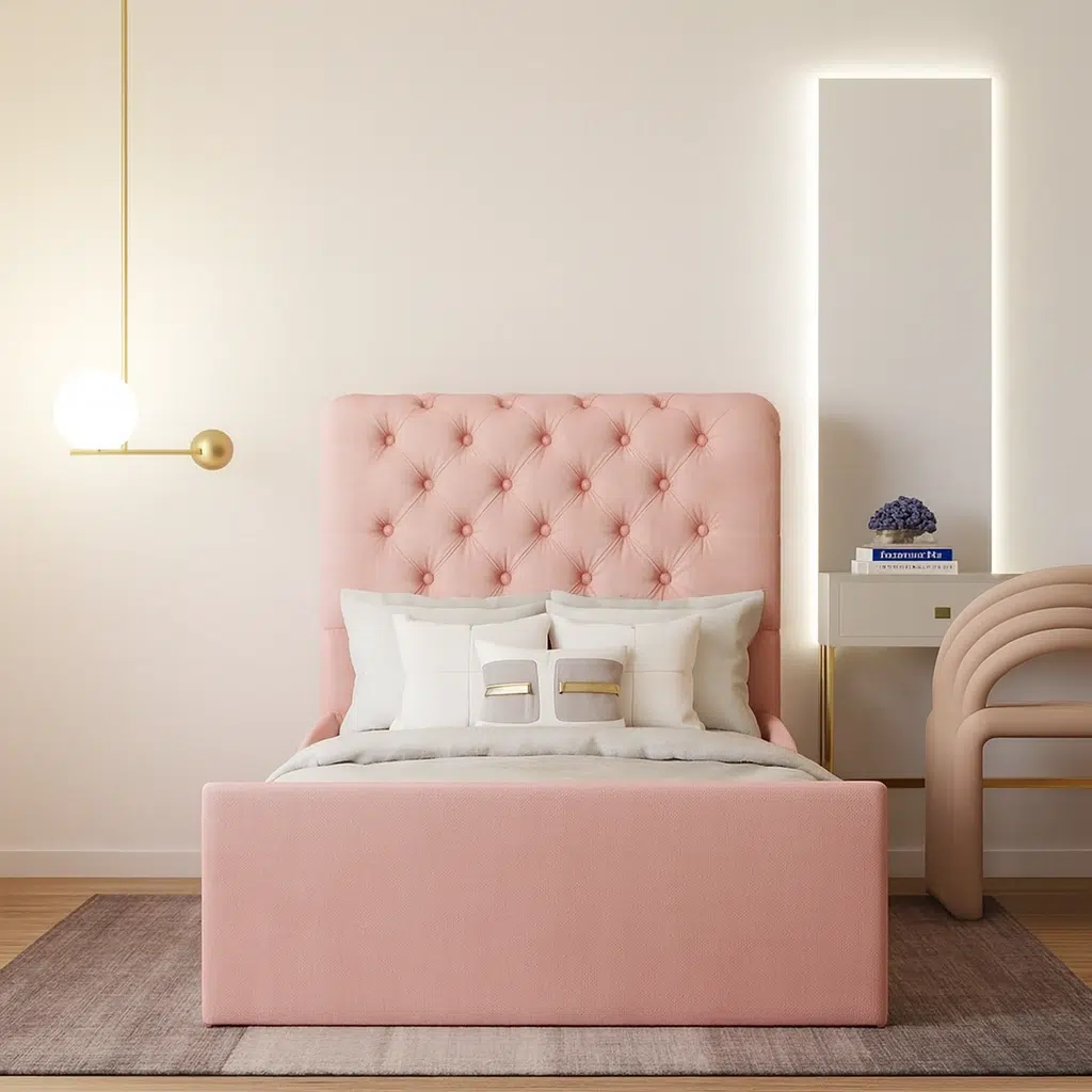 Blush Velvet Tufted Panel Bed Frame – At Karnak Home