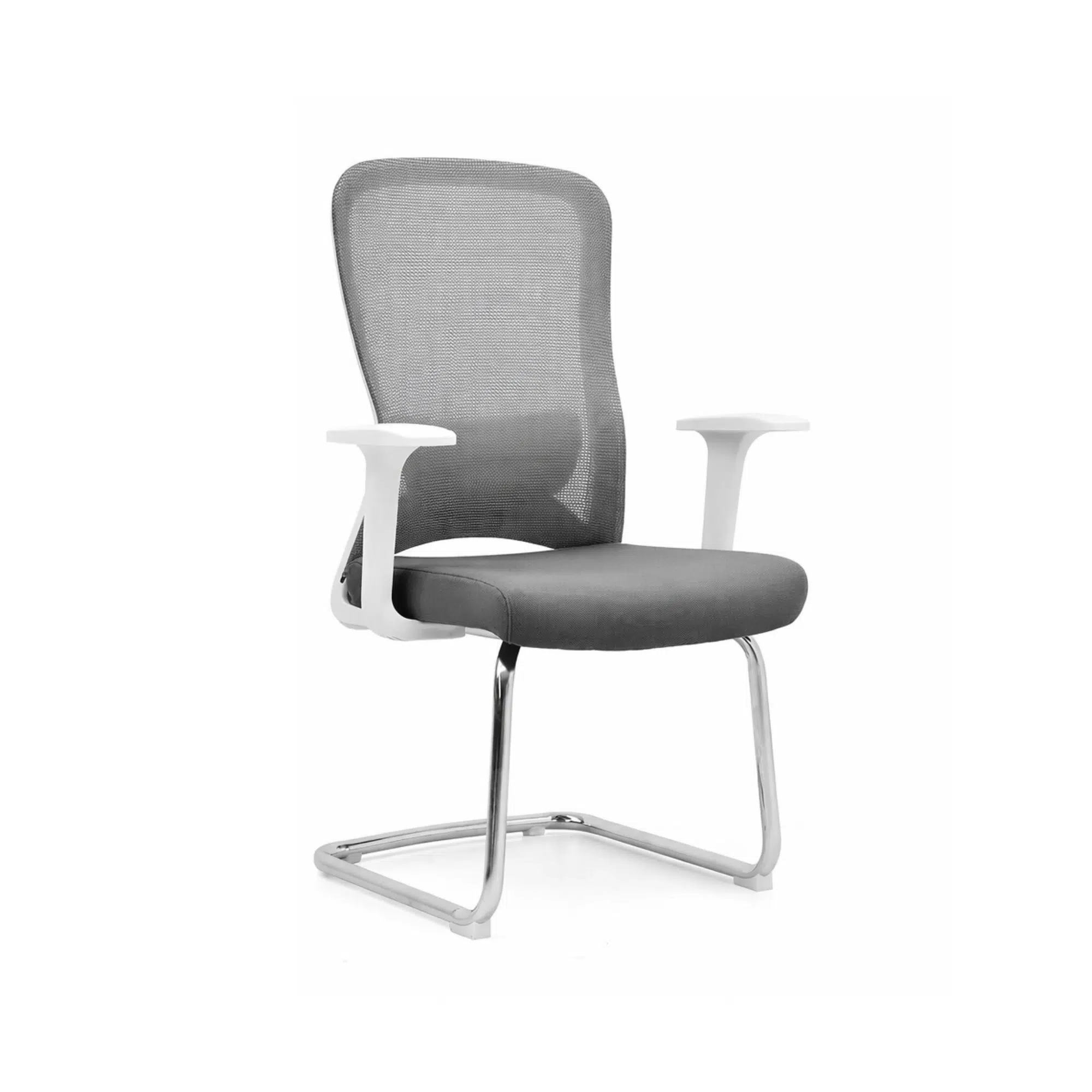 Meanwhile, the seat features fabric padding with high-density foam inside. Therefore, it offers steady comfort during meetings or short stays. The fixed handle design provides simple arm support. Additionally, the chrome metal frame with 2.0 mm thickness adds strength and stability. Overall, this breathable visitor chair combines mesh airflow, foam comfort, and a strong metal base for UAE office environments.