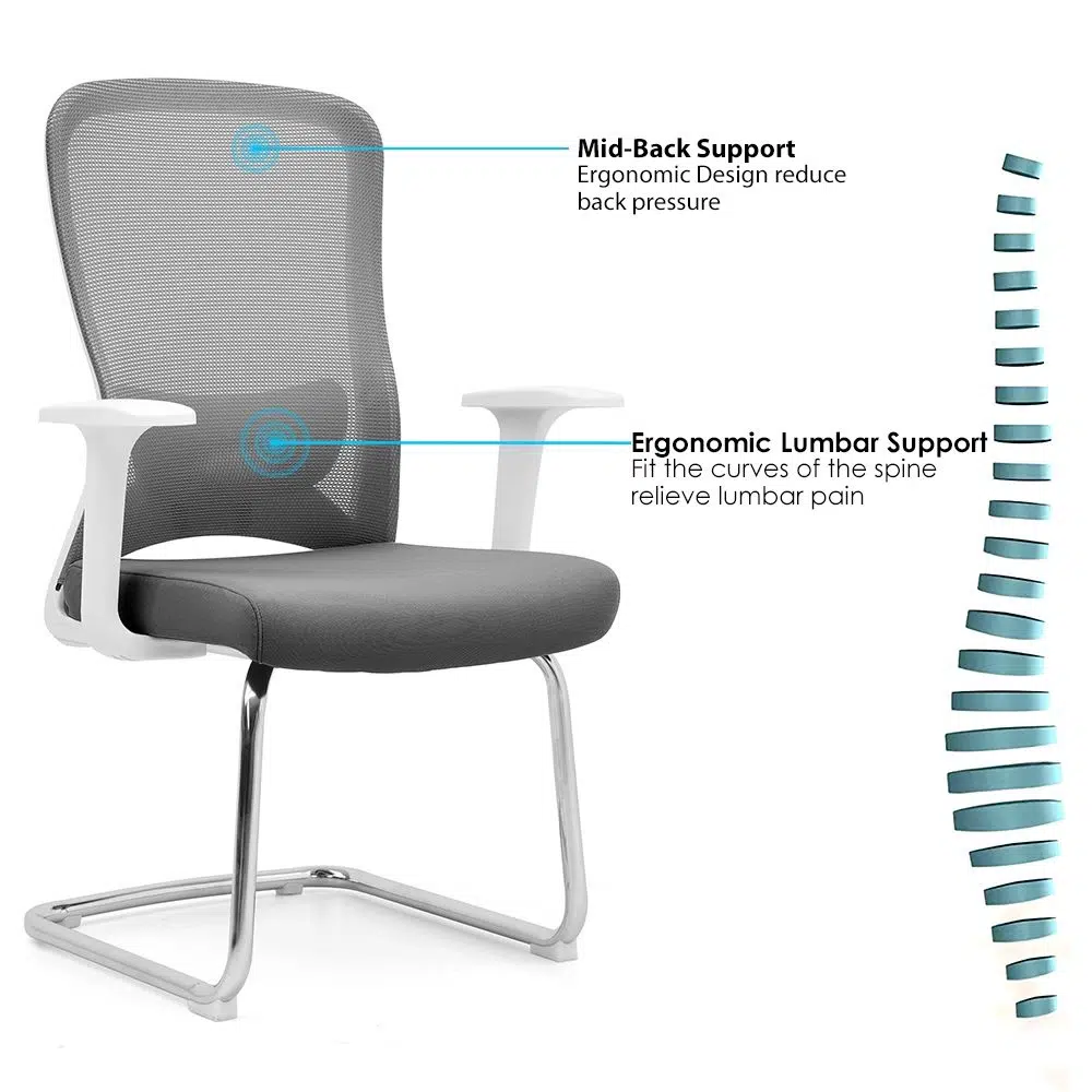 Overall, the Breathable Visitors Office Chair is designed for reception and meeting areas in Dubai and across the UAE. The mid-back mesh design allows steady airflow. Therefore, it helps keep visitors comfortable during waiting periods. The white frame gives a clean and modern look. As a result, it fits well in offices, clinics, and corporate spaces.