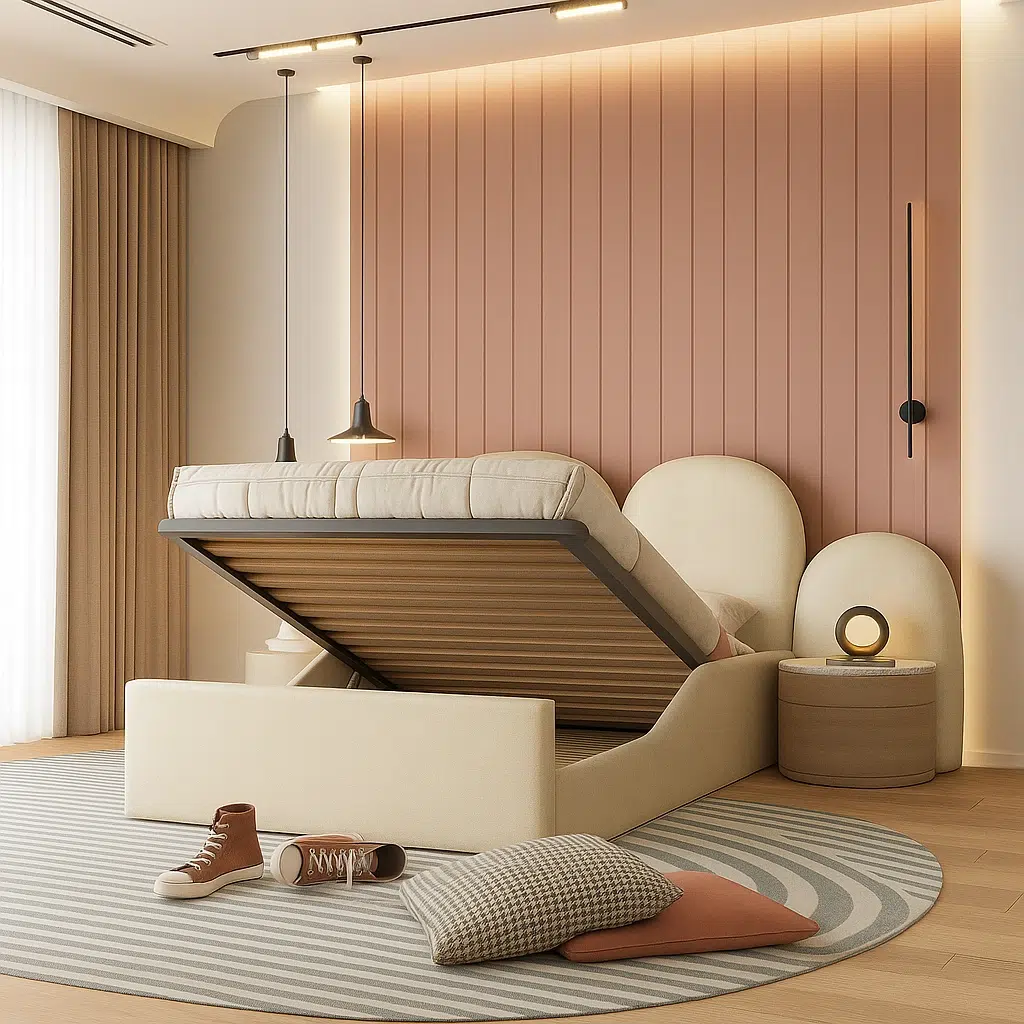 For UAE homes where smart storage matters, you can choose the optional ottoman lift-up feature. With this addition, the easy-lift mechanism gives you access to a large storage space for bedding, seasonal items, or personal belongings.