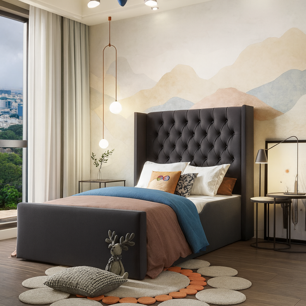 The CalmiRoyal Kids Bed is designed to bring comfort, style, and practicality to your child’s room. Its modern, space-saving design makes it ideal for UAE homes where smart layout planning truly matters. In addition, the sleek structure adds a fresh and contemporary look that blends well with different décor styles. Because of its sturdy construction, the bed provides long-lasting stability and safety for daily use. It also features smooth edges and a supportive frame, giving children a cozy and secure place to sleep every night.