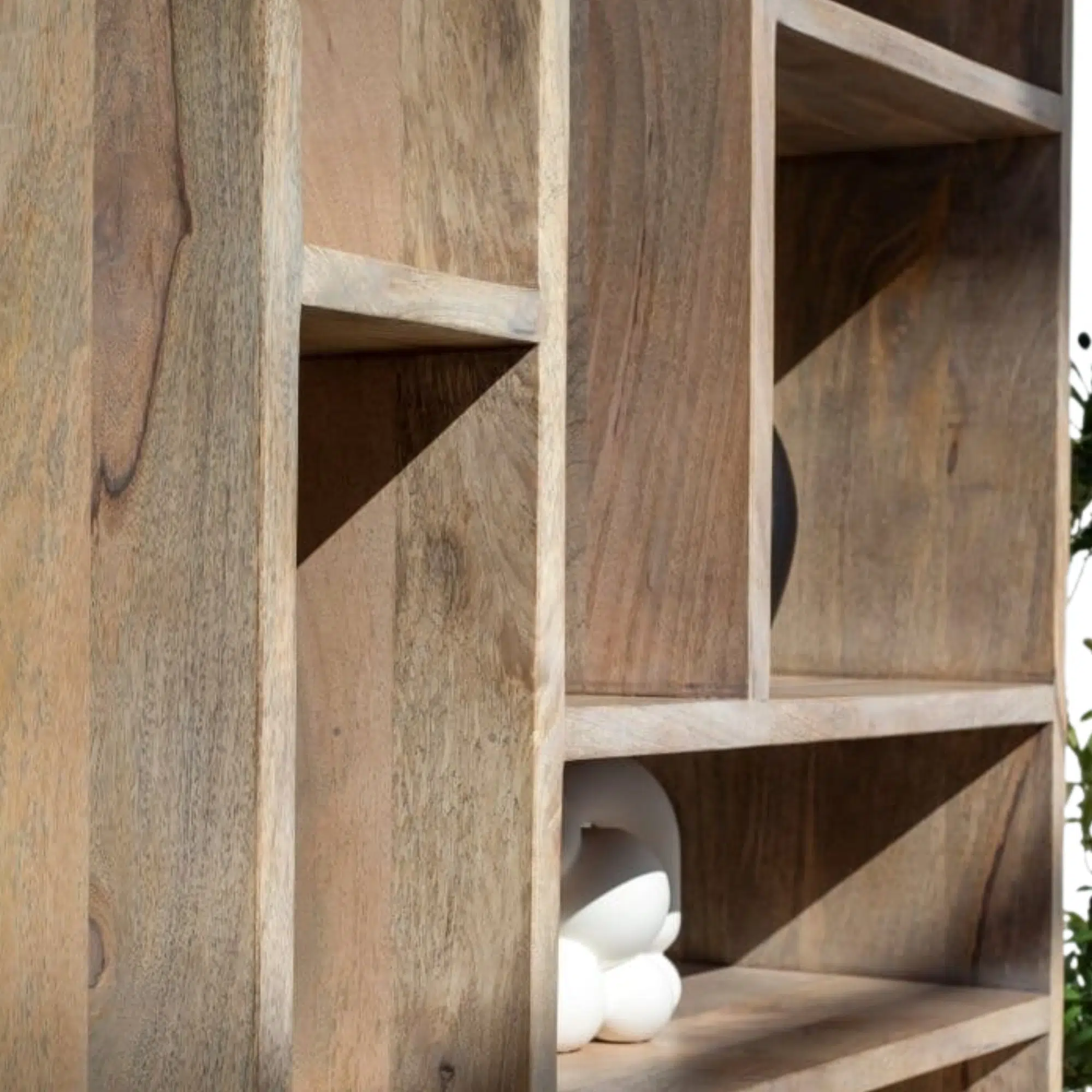 Additionally, the versatile shelving layout provides multiple levels for organizing and presenting books, décor accents, and cherished belongings. Meanwhile, the structured open design allows each compartment to function as an individual display section. Consequently, the unit becomes both a practical storage solution and a refined visual feature within the room.