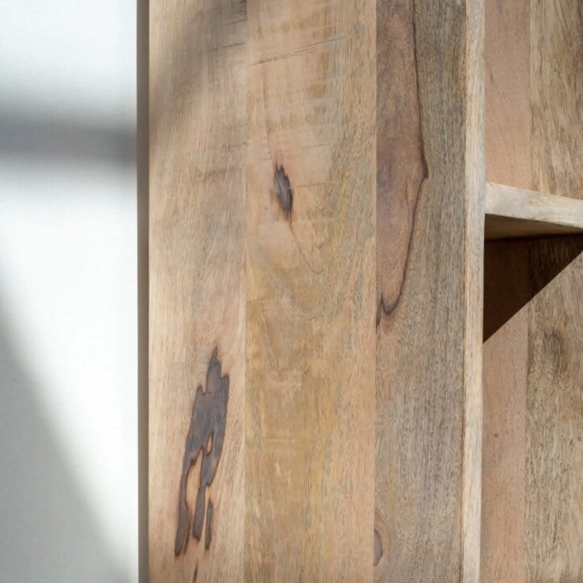 Moreover, the tall vertical proportions enhance wall presence without overwhelming the floor space. Additionally, the natural wood tones introduce warmth and texture into contemporary settings. As a result, the Wooden Display bookcase serves as a creative canvas for styling while maintaining everyday functionality.