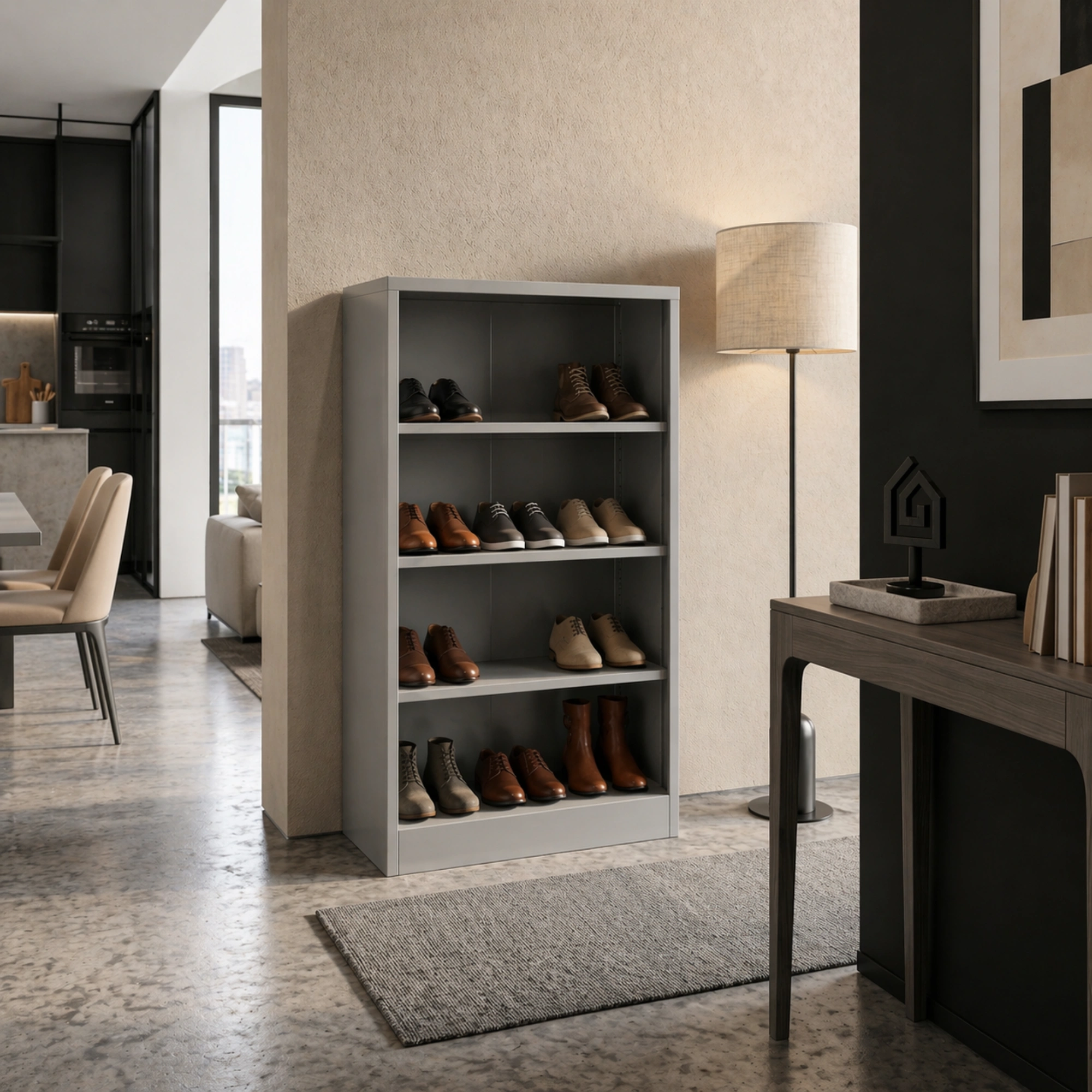 Overall, the Steel Shoe Rack provides a simple and practical solution for organizing footwear in homes, offices, or storage spaces. The open rack structure allows easy access to shoes while helping maintain a clean and organized entryway. Designed with a compact footprint, this steel shoe rack fits well in hallways, closets, and utility areas where efficient storage is required.