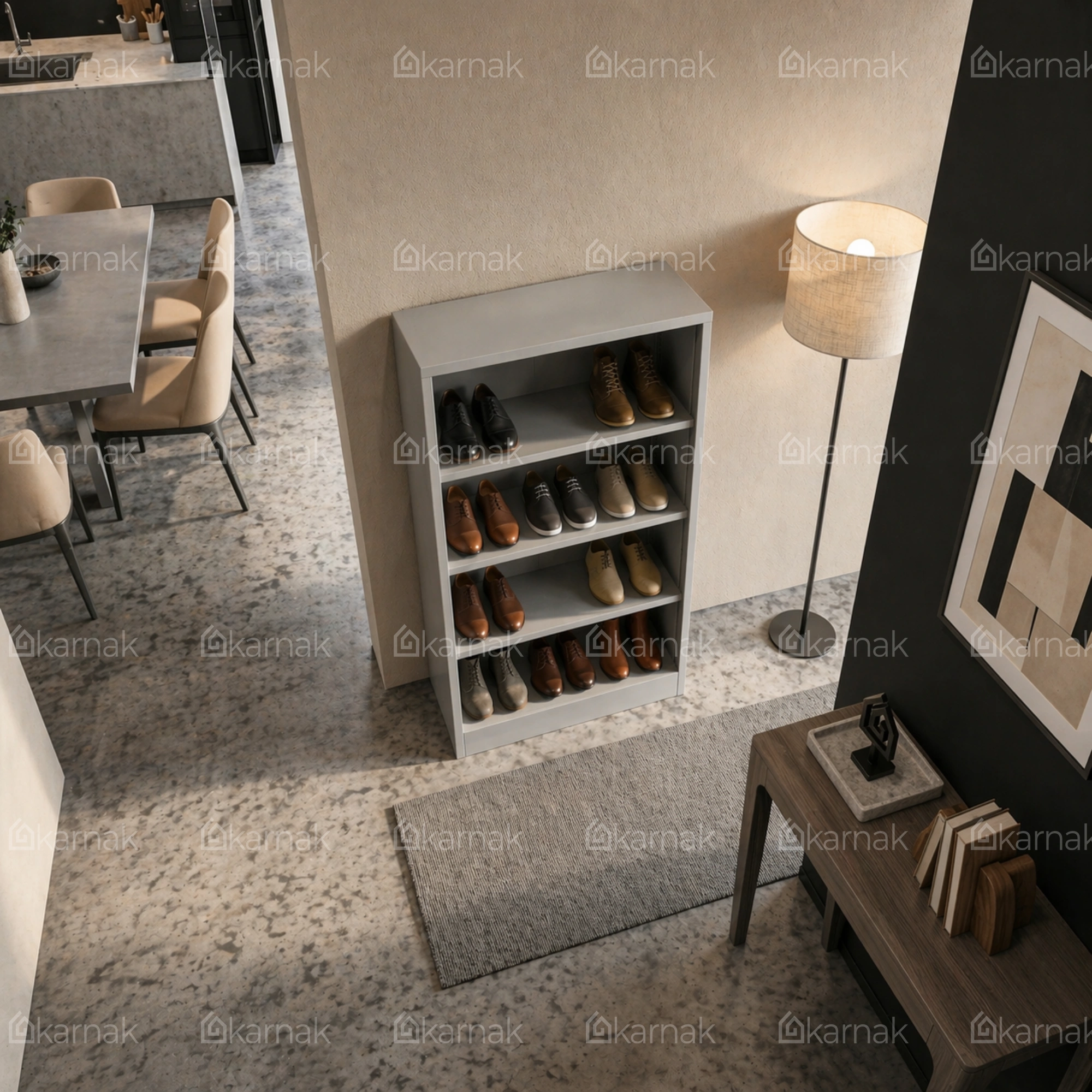 Additionally, the open design allows proper air circulation around footwear. This structure makes it easier to quickly place or remove shoes while keeping them visible and organized. Meanwhile, the compact installation size makes it suitable for smaller spaces where efficient storage is important.