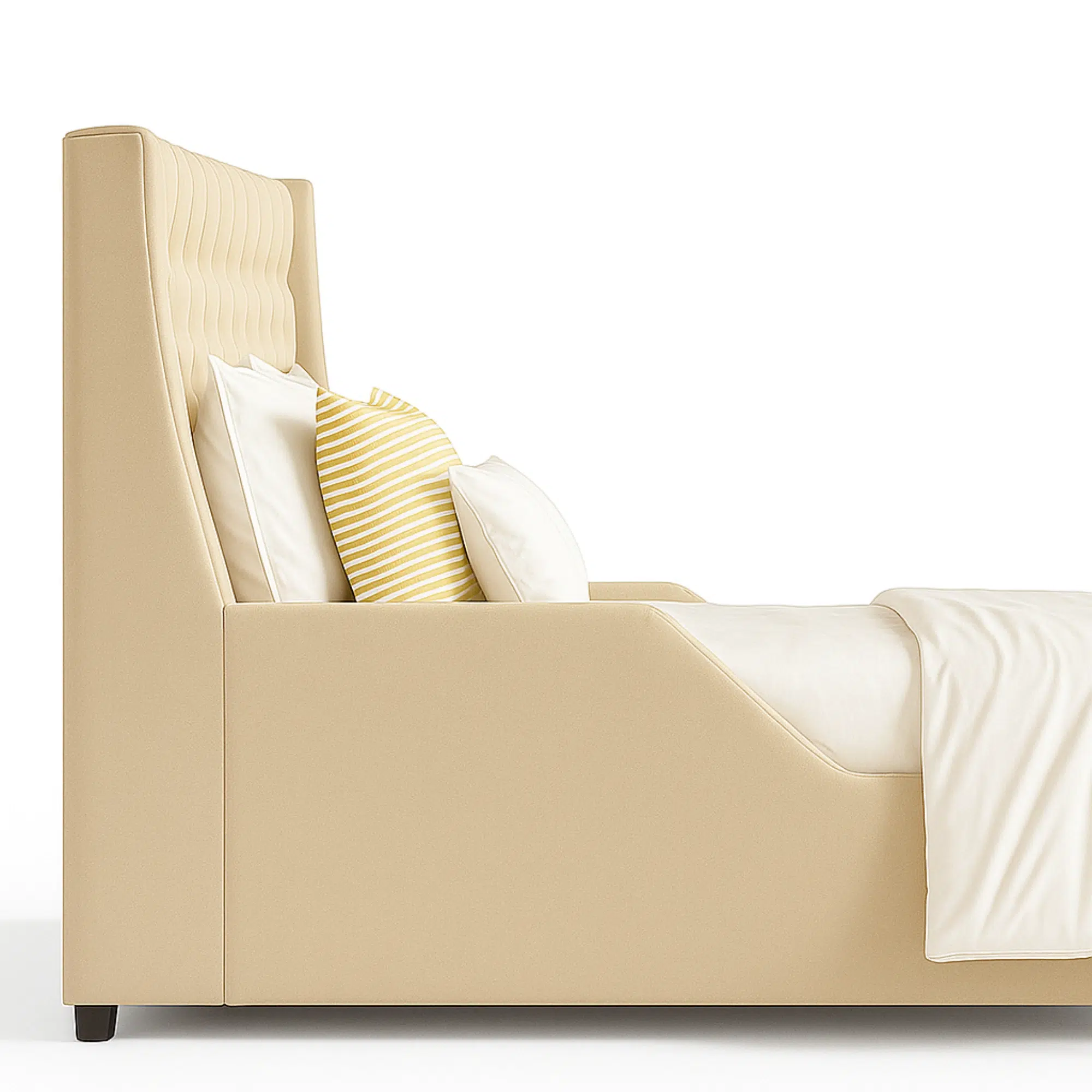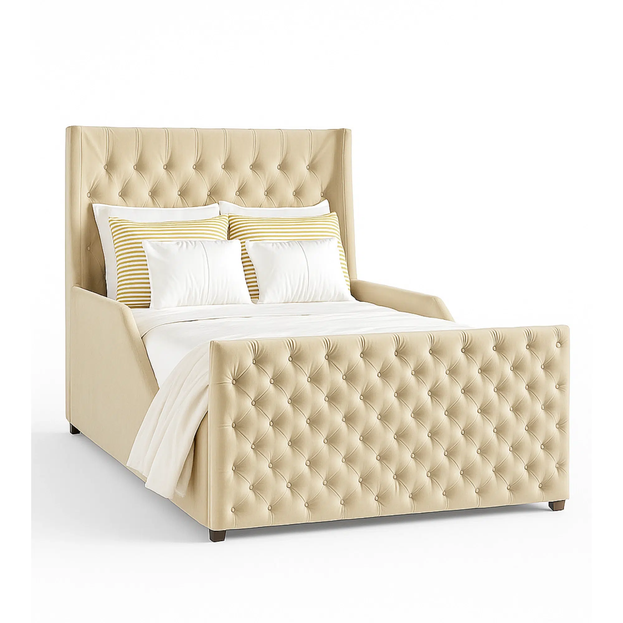 Elegant beige velvet upholstery with tufted headboard and footboard