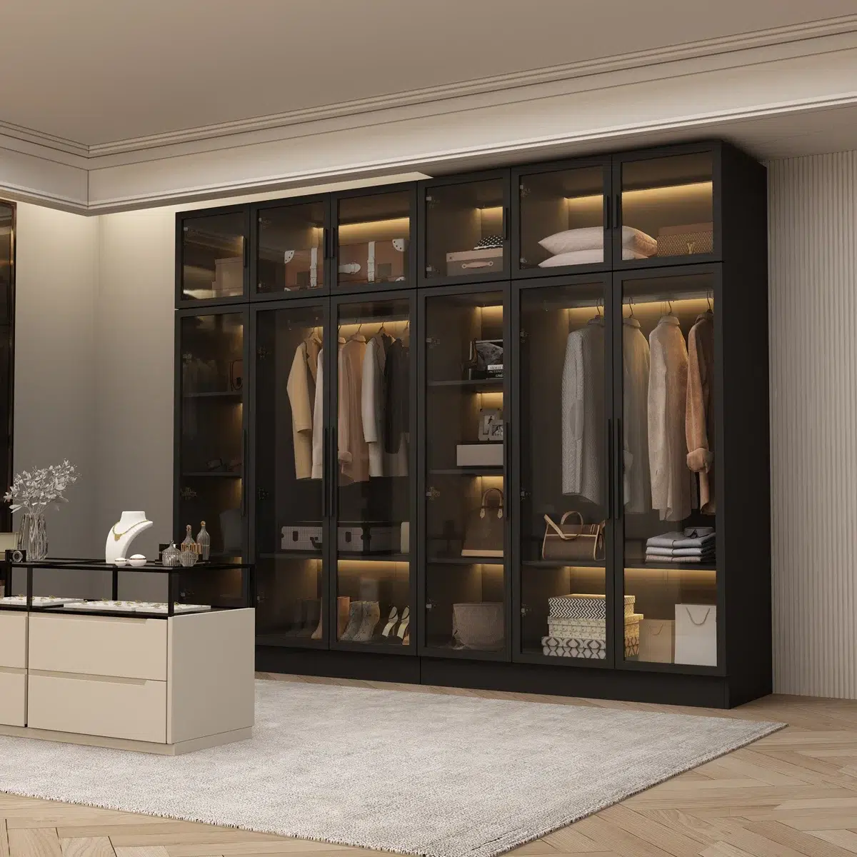 CrownCraft Luxury Glass Wardrobe – Modern Storage Cabinet | Premium Wardrobe Dubai