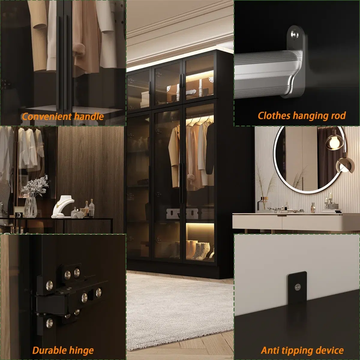 • Finish Style: Modern luxury glass wardrobe