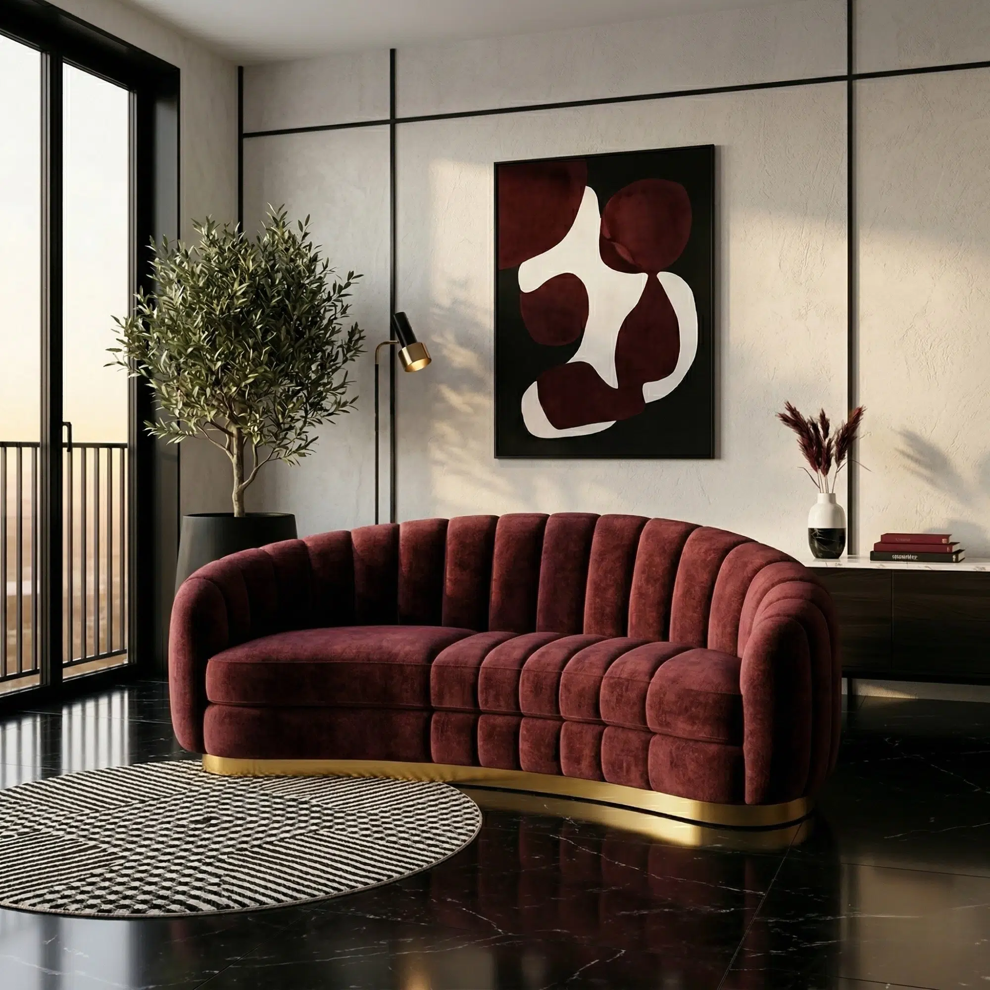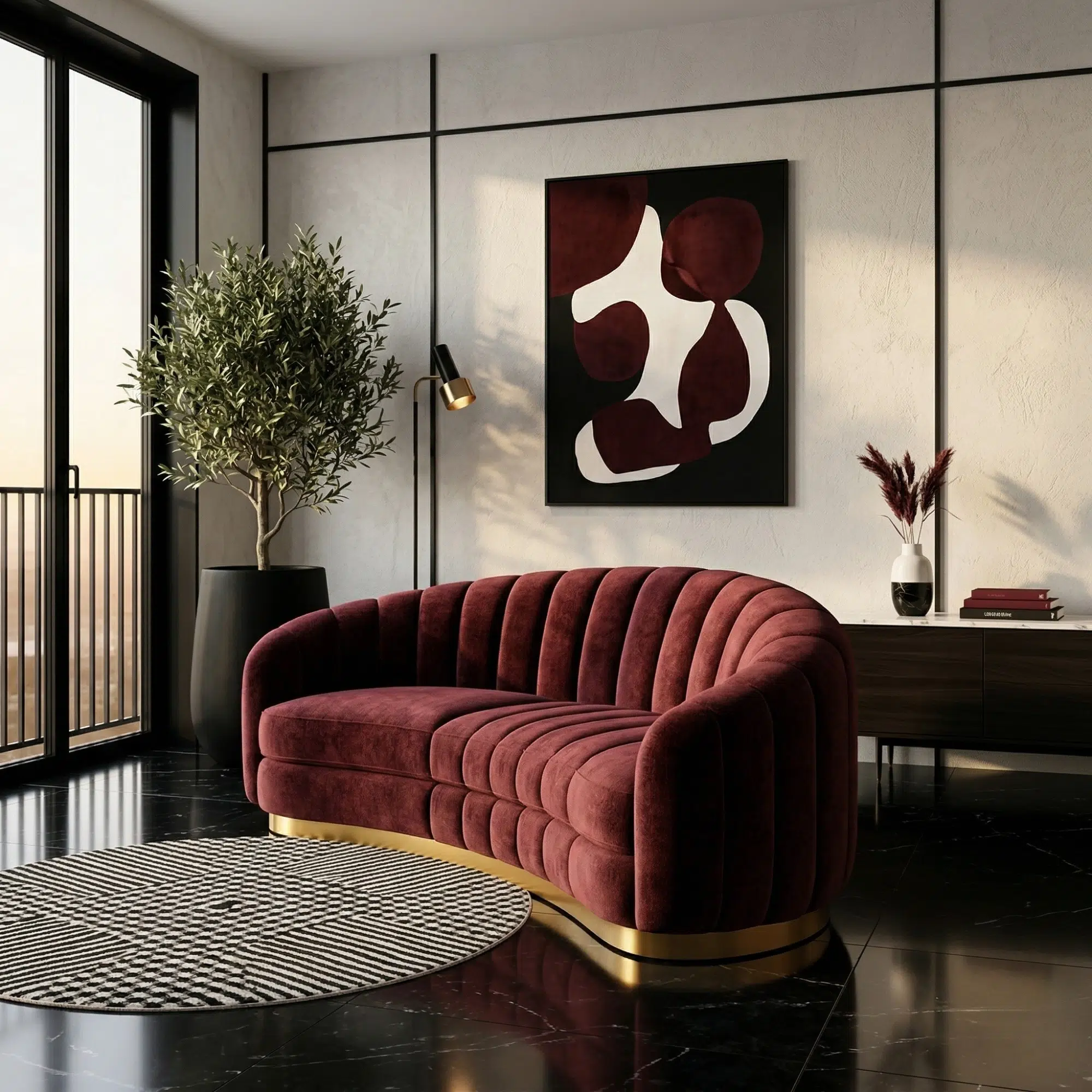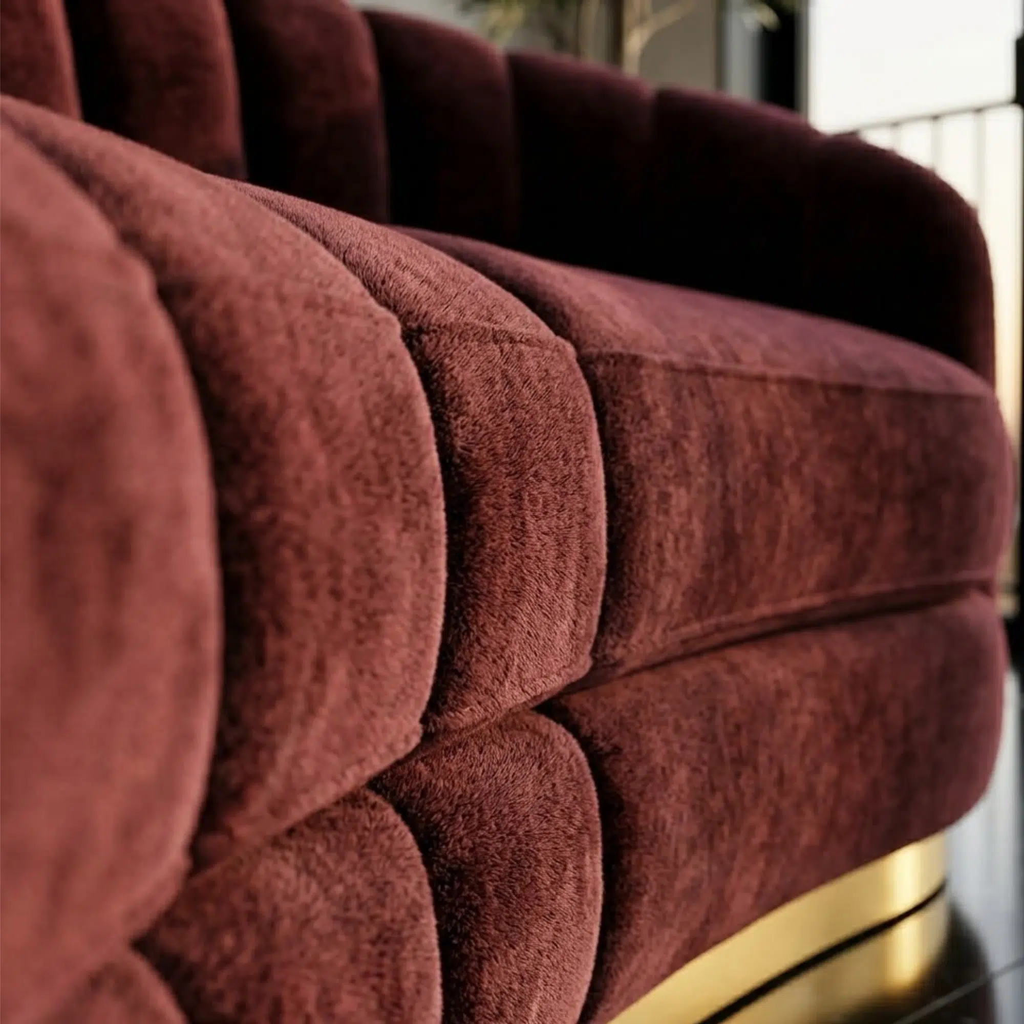 Additionally, the maroon color adds depth and warmth to the space, making it a standout feature. The curved structure allows for a relaxed seating position while maintaining a stylish look.