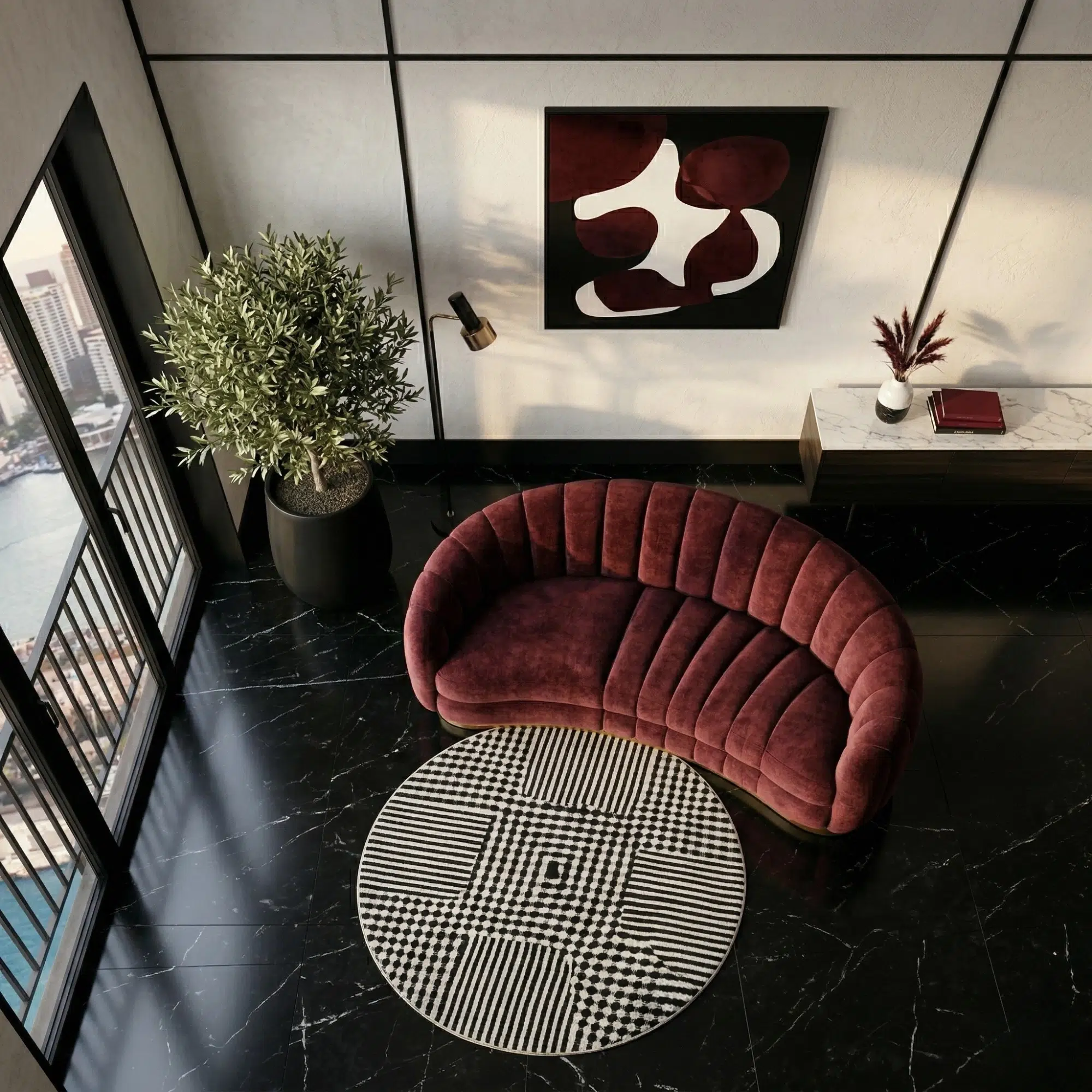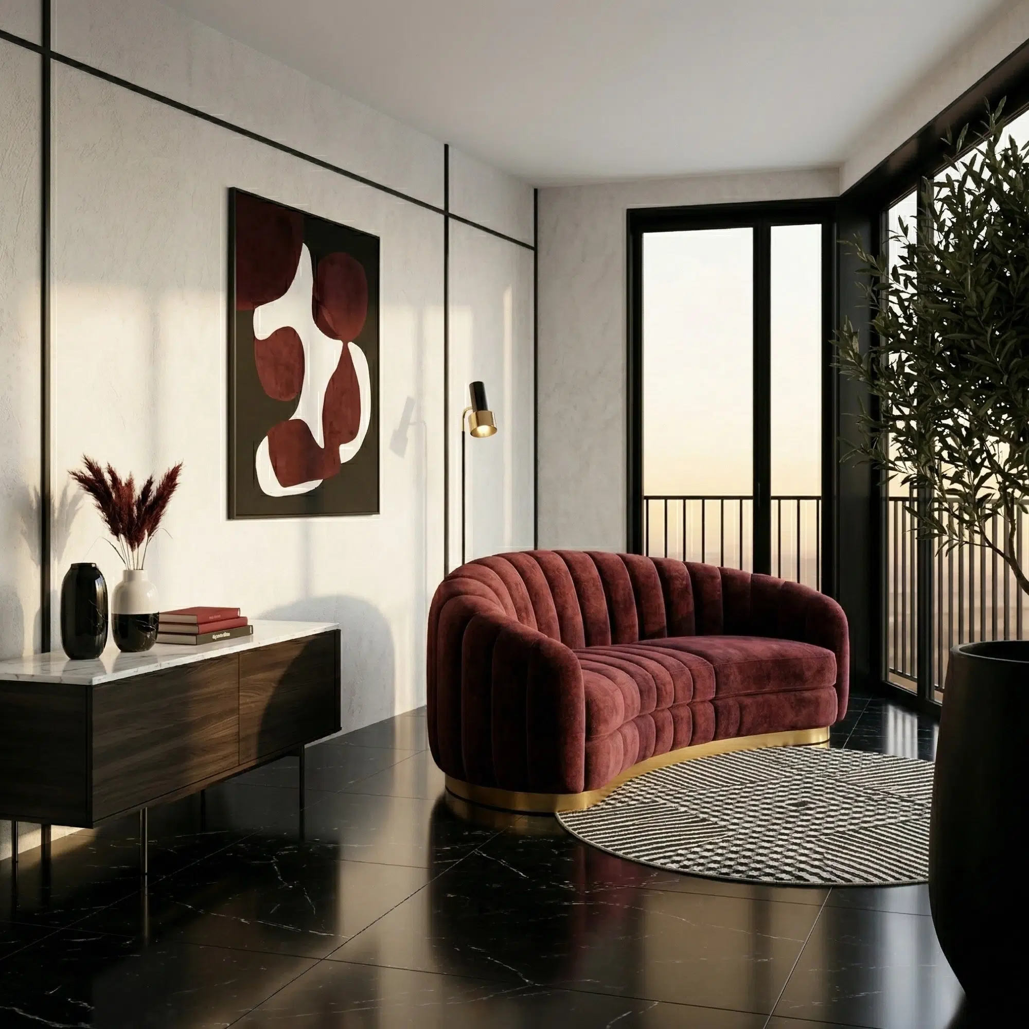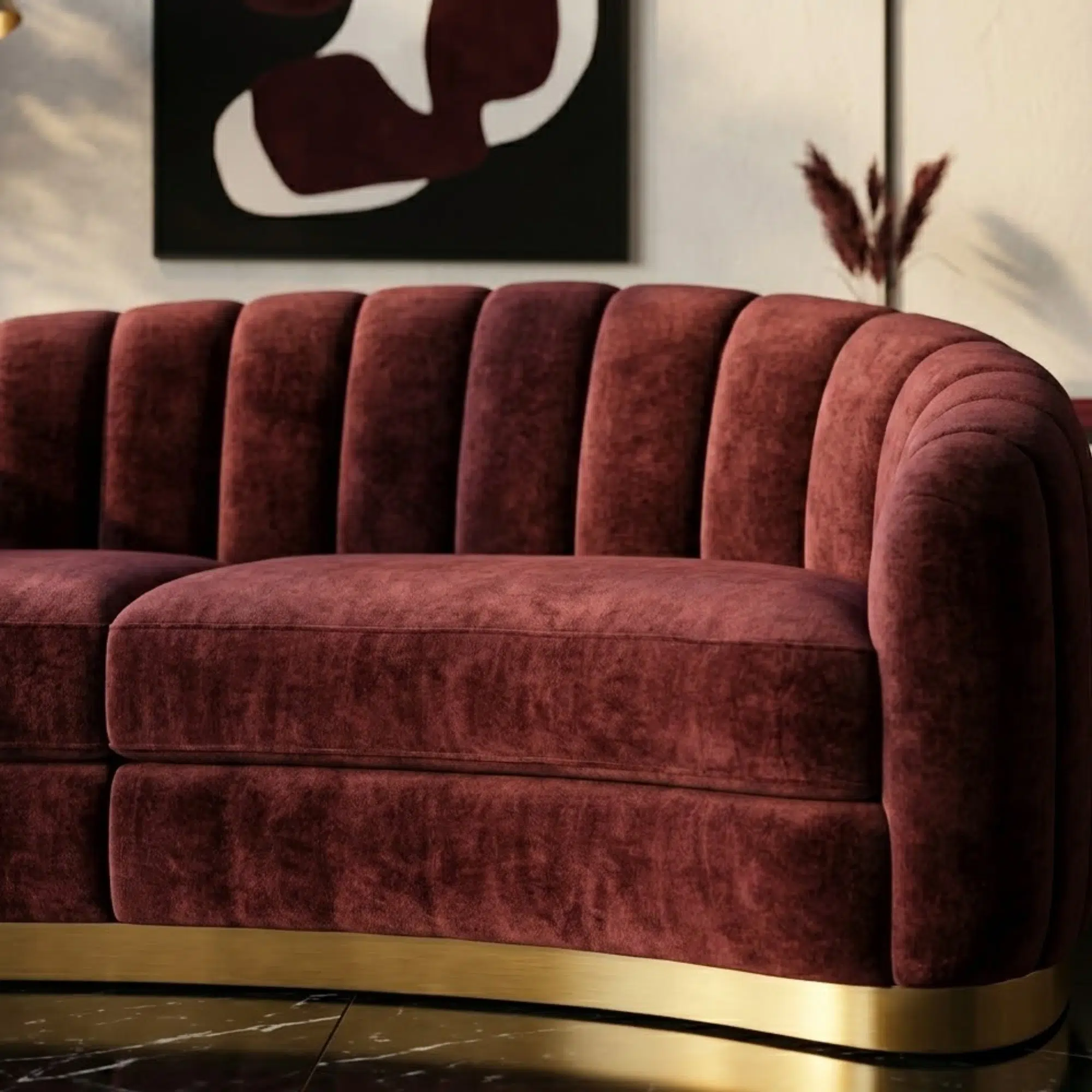 Additionally, the maroon color adds depth and warmth to the space, making it a standout feature. The curved structure allows for a relaxed seating position while maintaining a stylish look.
