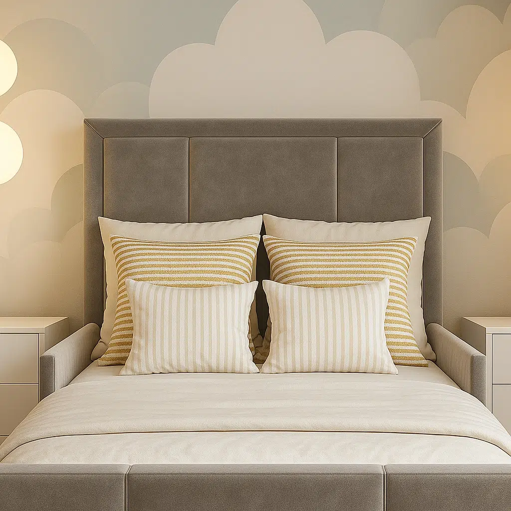 This Dora Junior Bed is a luxurious addition to your child’s bedroom. It features a handcrafted line panel headboard and footboard with reinforced timber frame for extra stability, crafted to perfection by skilled craftsmen and upholsterers. For added customisation, choose the fabric and colour that suit your home’s decor. Make this bed yours with its bespoke design and high quality construction to ensure a long lifespan.