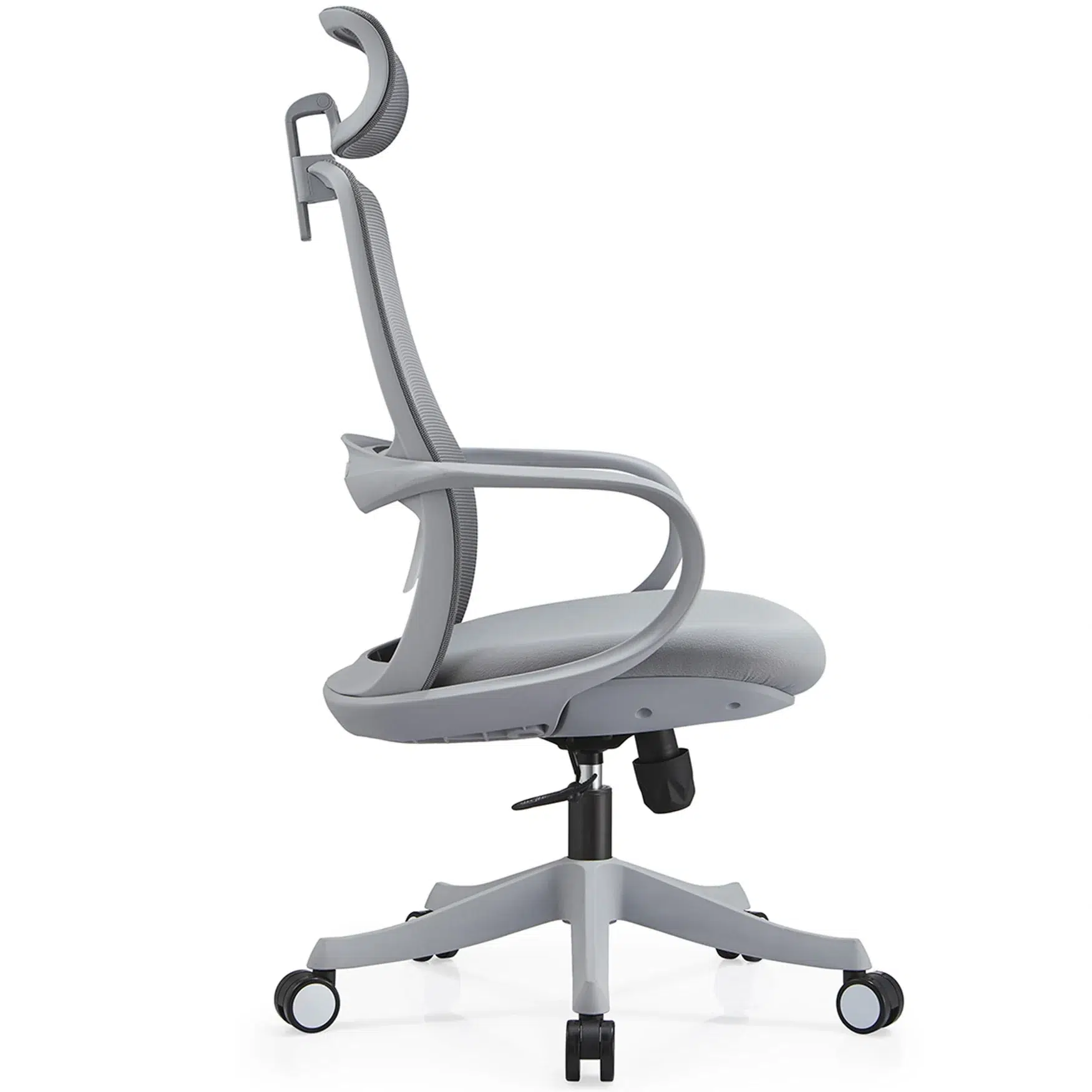 Luxury Executive Office Chair with Headrest in Dubai, Abu Dhabi, Sharjah, and across the UAE. Gray mesh chair with adjustable headrest support.