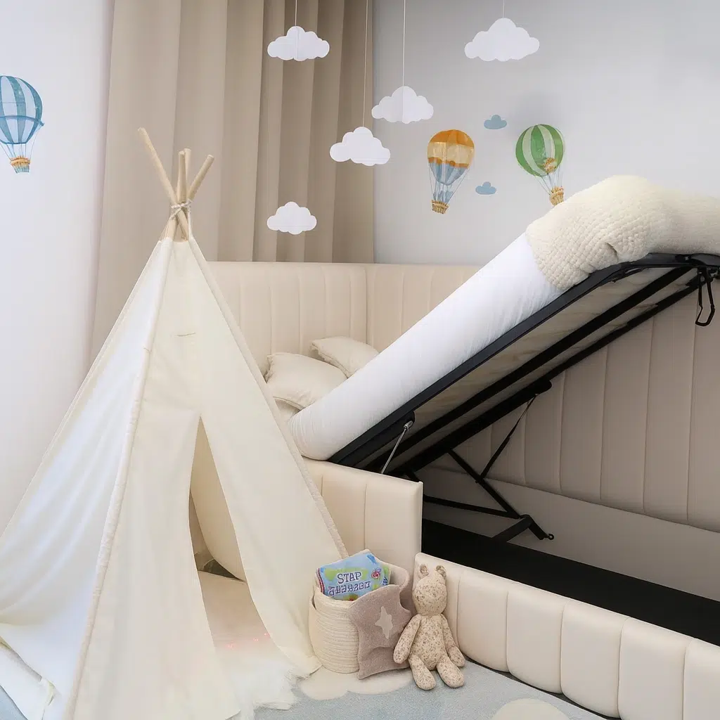 The Fluffy Hug Kids Corner Bed creates a complete sleep and play space for your child. It combines comfort, style, and smart functionality in one design. As a result, it fits perfectly in bedrooms, play areas, and compact rooms where thoughtful space use matters.