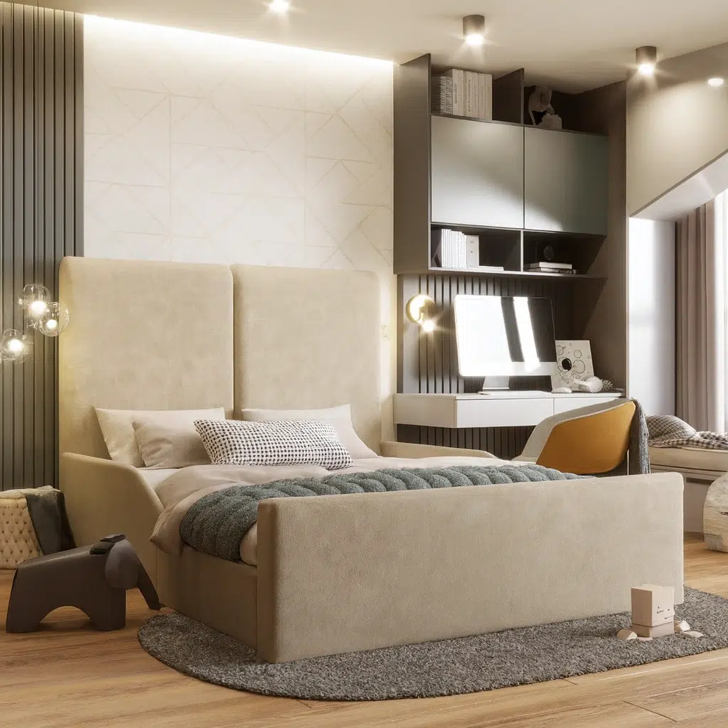 Crafted in the UAE to the highest quality standards, the bed reflects durability, long-lasting performance, and exceptional craftsmanship. Furthermore, its sprung slat base offers enhanced support and improved mattress longevity. In addition, optional ottoman storage makes the design more practical for compact rooms. With 100+ fabric and color options, plus fully made-to-measure sizing, it can be customized to match your child’s personality and your home’s interior style. Therefore, the Elite Junior Bed becomes a functional and stylish centerpiece for any junior bedroom.