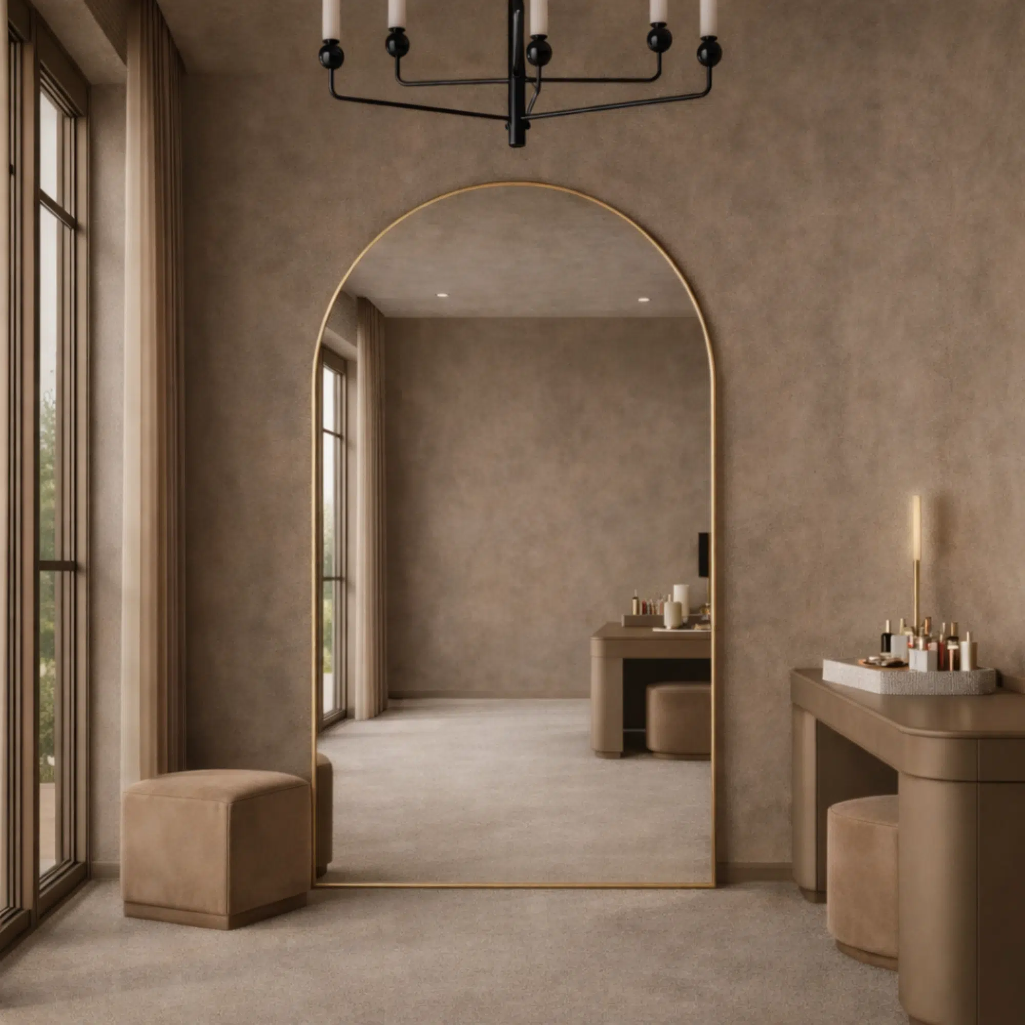 Perfect for clients searching for luxury gold mirrors, modern arched mirrors, and large statement mirrors in Dubai.