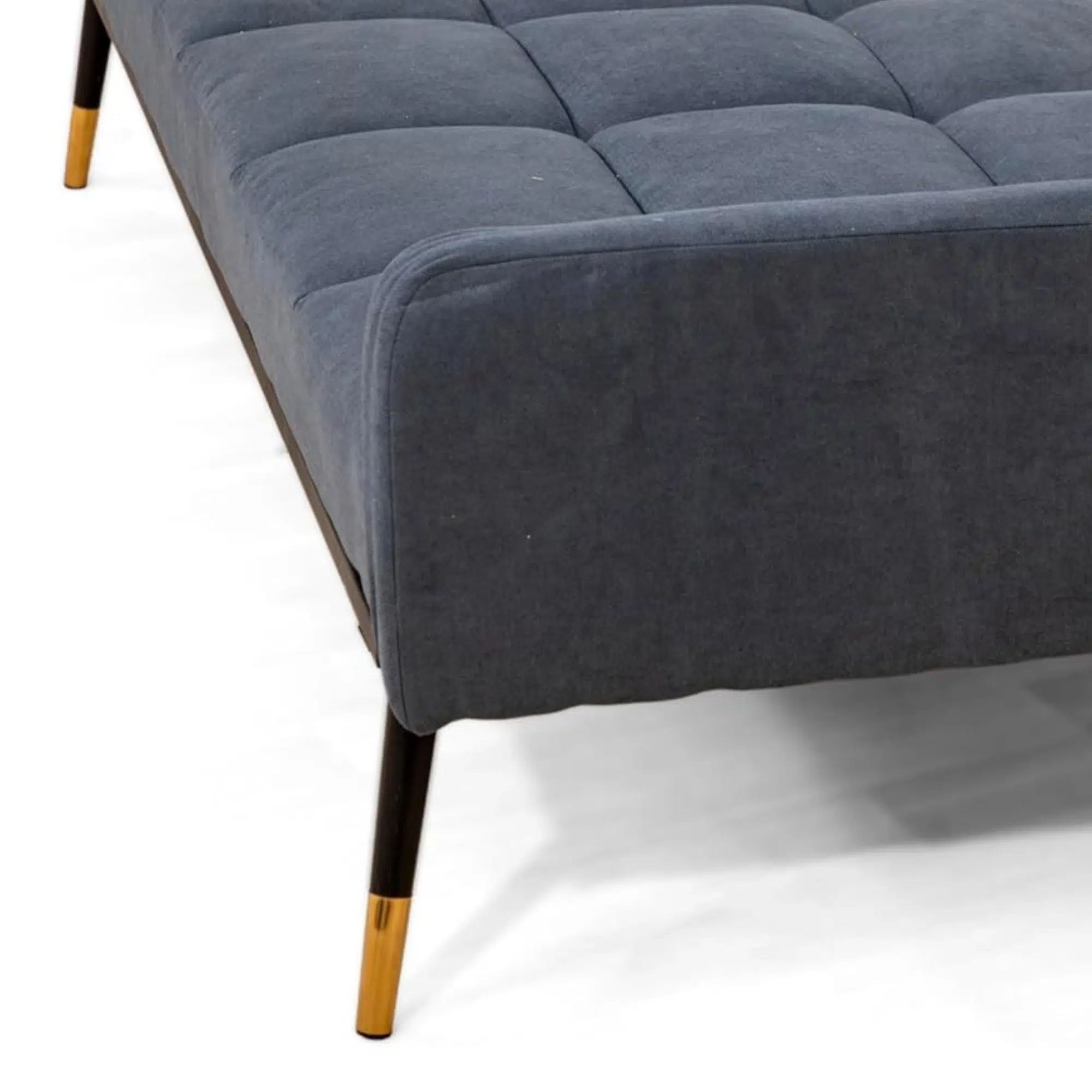 Additionally, high-density foam cushioning supports the seating and maintains shape and comfort over time. The upholstery features a textured tufted finish that complements contemporary interiors. Solid wood legs provide firm ground support and elevate the structure to improve balance and durability.