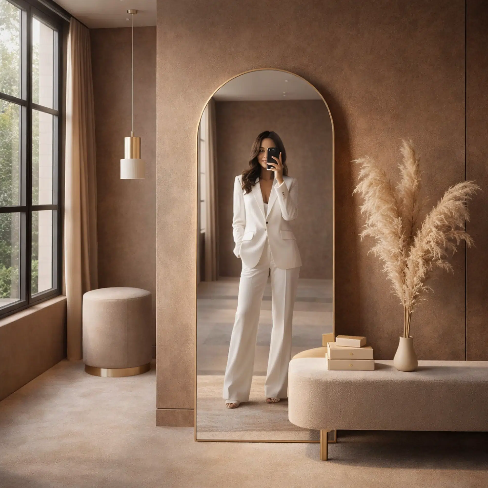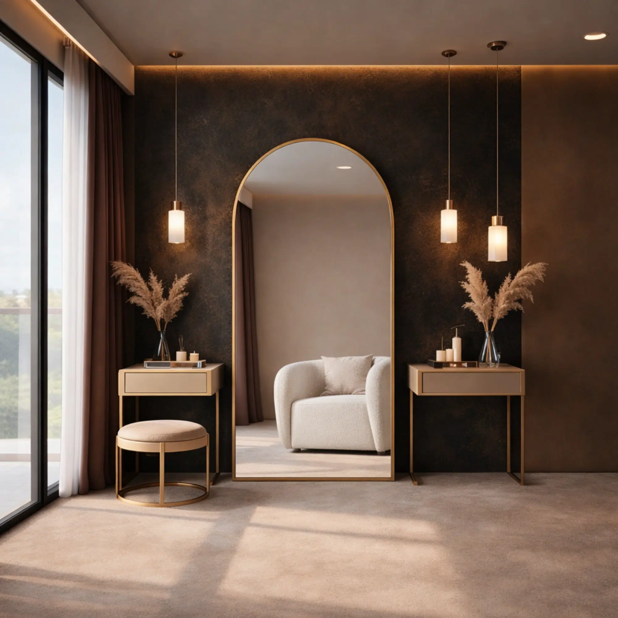 Ideal for customers searching for luxury mirrors in Dubai, arched gold mirrors UAE, modern dressing mirrors, and designer wall mirrors.