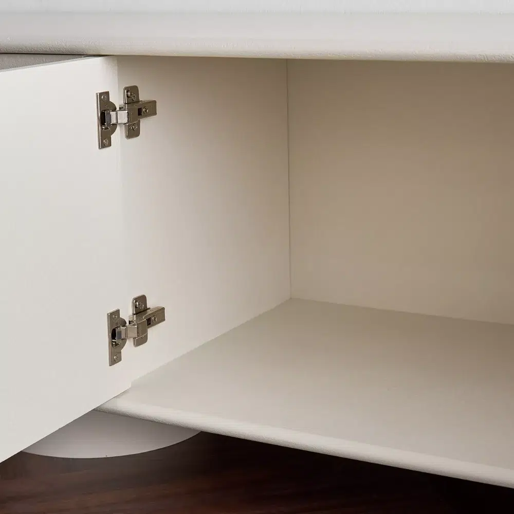 Designed to support large TVs up to 75 inches, this modern media unit UAE features four concealed doors that keep cables, accessories, and media essentials hidden—maintaining a clean, clutter-free aesthetic. The sculpted front panels add subtle depth and visual interest while preserving a minimalist silhouette.