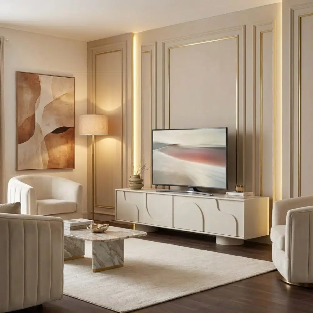 The Imperial Prime TV Console is a premium luxury TV unit Dubai crafted for modern UAE interiors that demand elegance, symmetry, and a high-end architectural finish. With its wide 200cm design and refined plaster-finish TV console, it delivers a seamless, built-in luxury look ideal for upscale living rooms in Dubai and Abu Dhabi.
