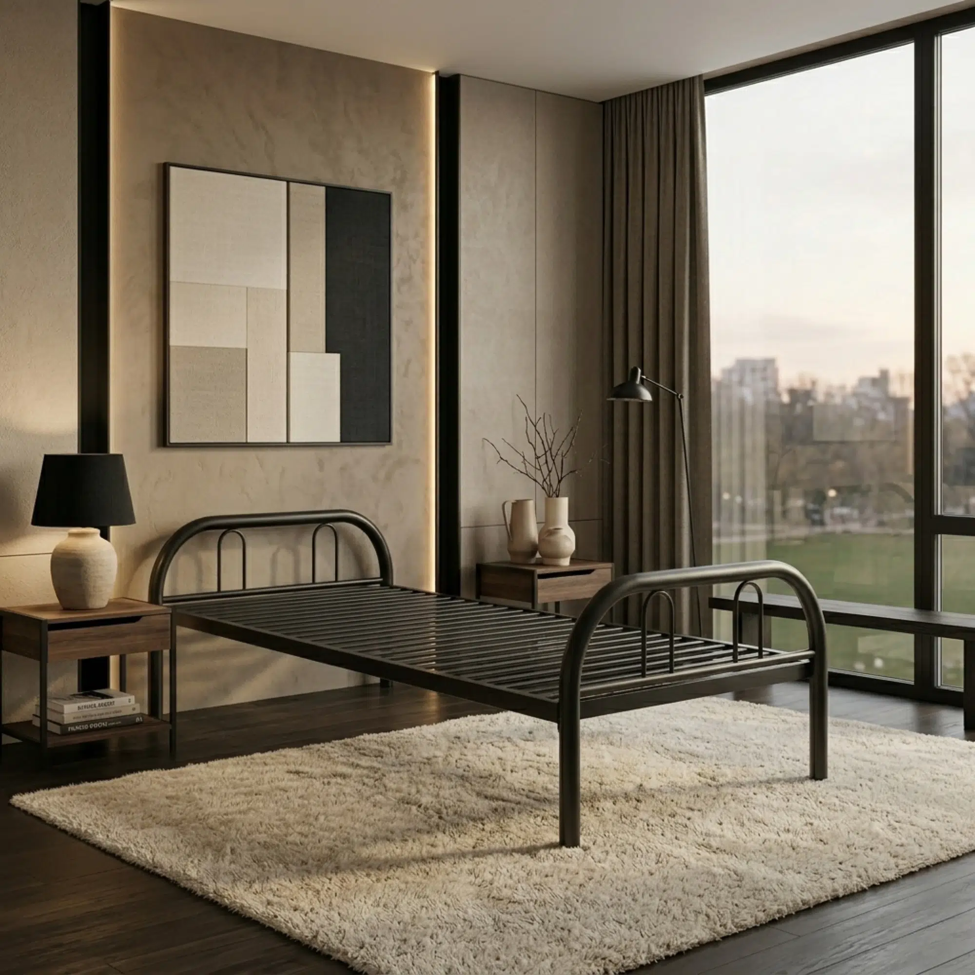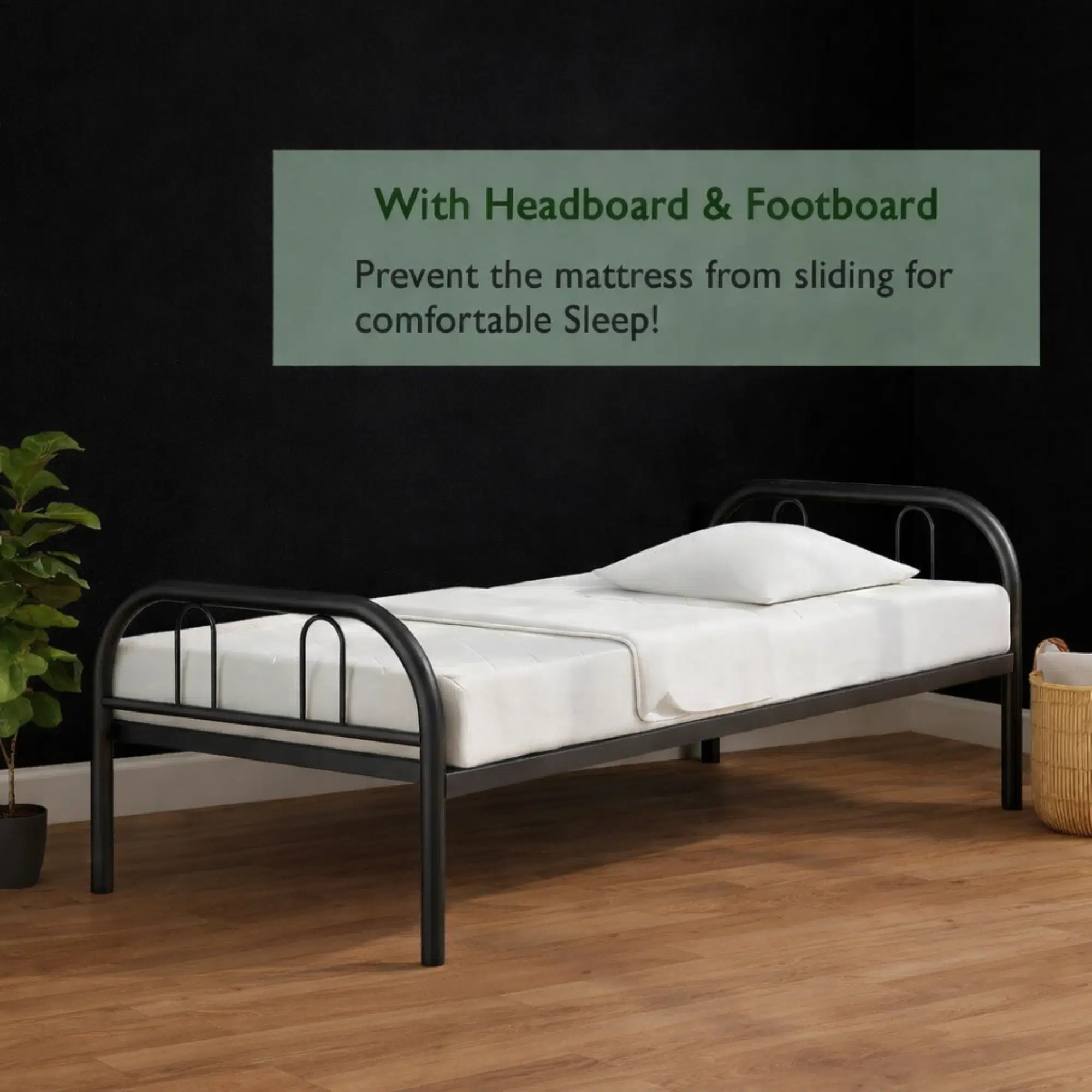 Additionally, the black finish gives the bed frame a clean and versatile appearance that works well in many settings. The heavy-duty steel construction provides dependable support for daily use, making it a practical solution for both residential and project-based requirements. Meanwhile, the simple profile allows it to blend easily with different room styles while maintaining a strong and structured look.