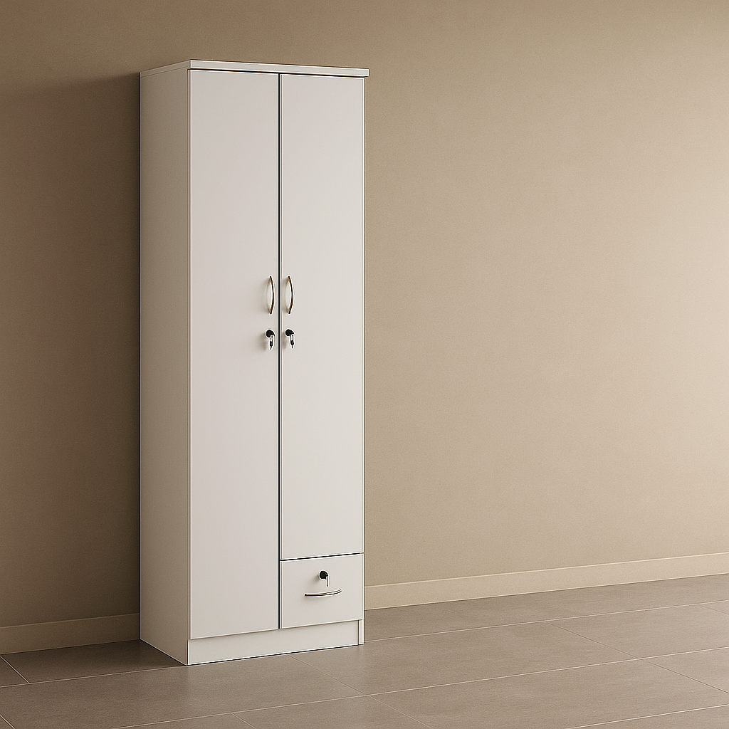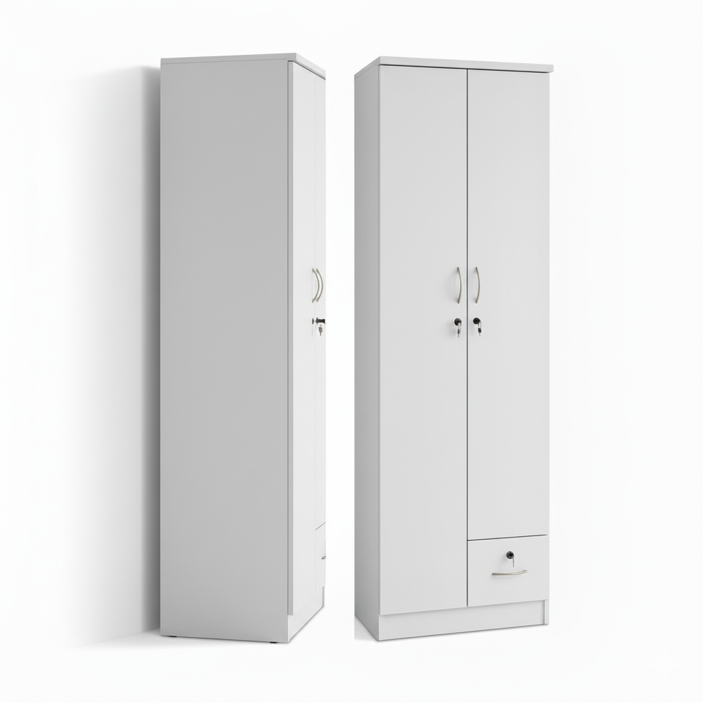 Transform your space with the 2 Door Wooden Wardrobe Cabinet, a perfect mix of modern design, useful storage, and lasting quality. With its clean white finish, this wooden wardrobe adds brightness and charm to any room. Moreover, it fits well with both modern and classic interiors, making it a great choice for bedrooms, offices, or dressing areas.
