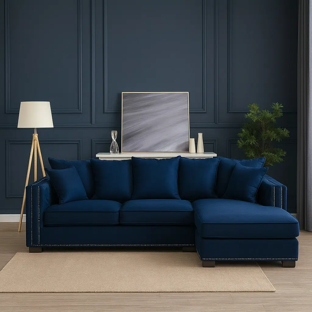 The Kensington Button Tufted L-Shape Sofa is designed for homeowners who value luxury, comfort, and a refined aesthetic in their living space. With its deep button tufting, quilted arm detailing, and plush back cushions, this elegant sofa creates a sophisticated atmosphere while offering exceptional comfort. The premium velvet upholstery adds a rich, smooth feel, making it a standout centrepiece for modern UAE homes. Whether you prefer a left- or right-hand corner layout, its versatile design adapts seamlessly to your interior.