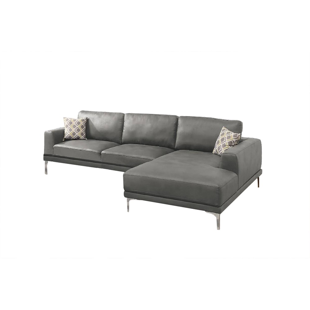 This 2-Piece Sectional Sofa With Chaise is the perfect addition to any living room ensemble. This sectional introduces a touch of texture to your interior design, showcasing a clean-lined silhouette featuring sleek metal legs. Upholstered with Breathable Leatherette giving it a lived-in look. The wide chaise gives you extra support whenever you need some time to relax.