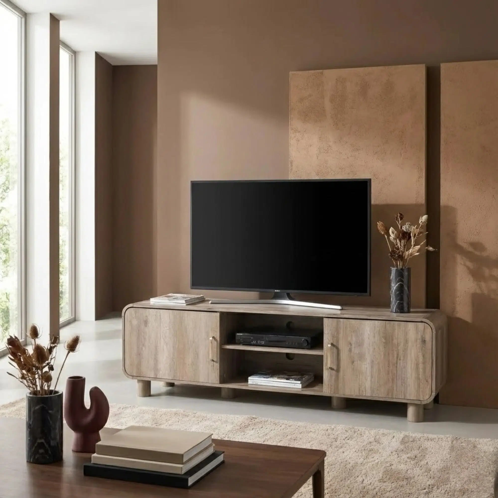 Crafted from durable engineered wood, the Lume TV Unit offers strength, stability, and a refined finish—perfect for customers searching for a modern TV stand Dubai, 75 inch TV unit UAE, or a stylish wooden TV cabinet.