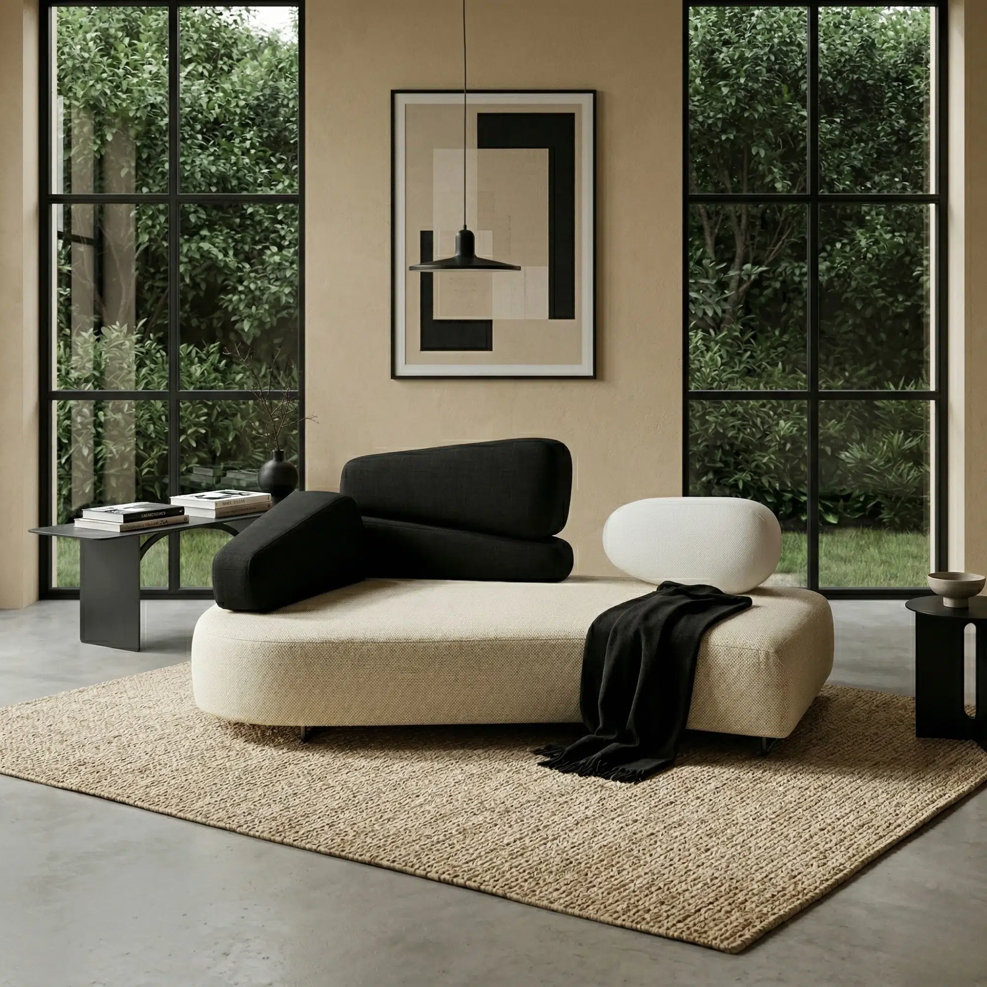 Overall, the Modern Chaise Lounge delivers a refined and contemporary seating option for modern interiors. Its extended form provides a relaxed lounging experience while maintaining a sleek and structured appearance. Moreover, this luxury Sofa is designed to combine comfort with a sophisticated visual presence.