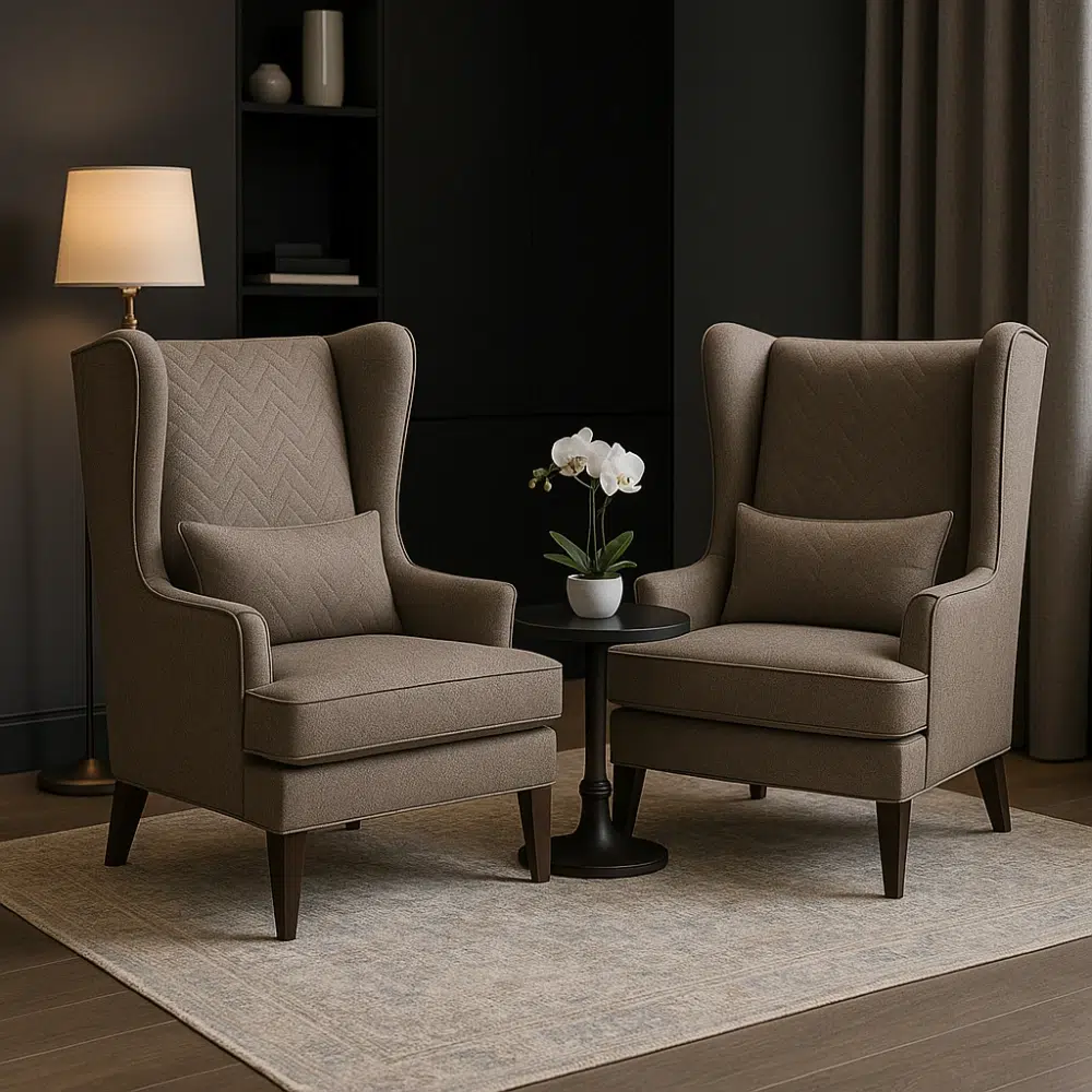 The Luxury Wingback Armchair delivers timeless elegance, deep comfort, and refined modern style—making it a standout statement piece for UAE homes. Featuring a tall wingback silhouette, premium quilted upholstery, and generously padded cushions, this armchair offers exceptional support for reading, relaxing, or entertaining. The detailed stitching and included lumbar pillow enhance both the visual appeal and ergonomic comfort of the chair.