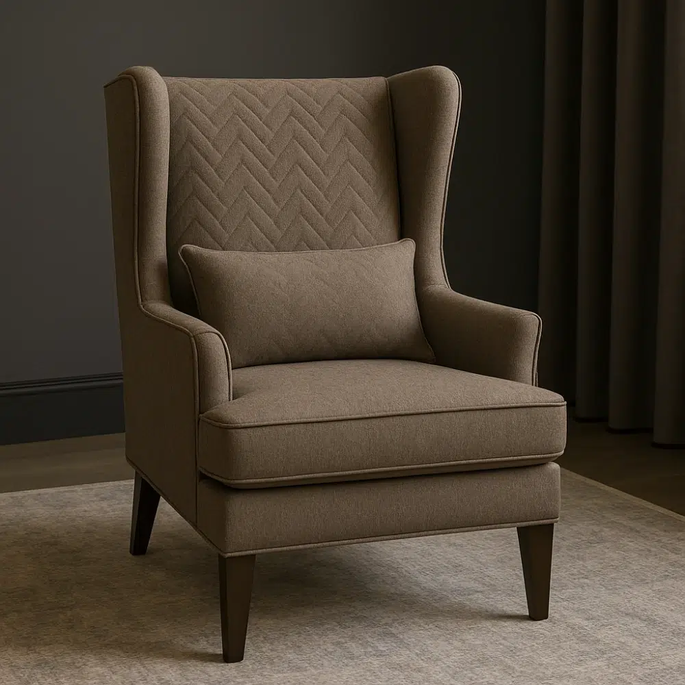 A premium high-back wingback armchair featuring quilted upholstery, plush cushioning, and elegant wooden legs designed to elevate any UAE living room, bedroom, or stylish lounge space.