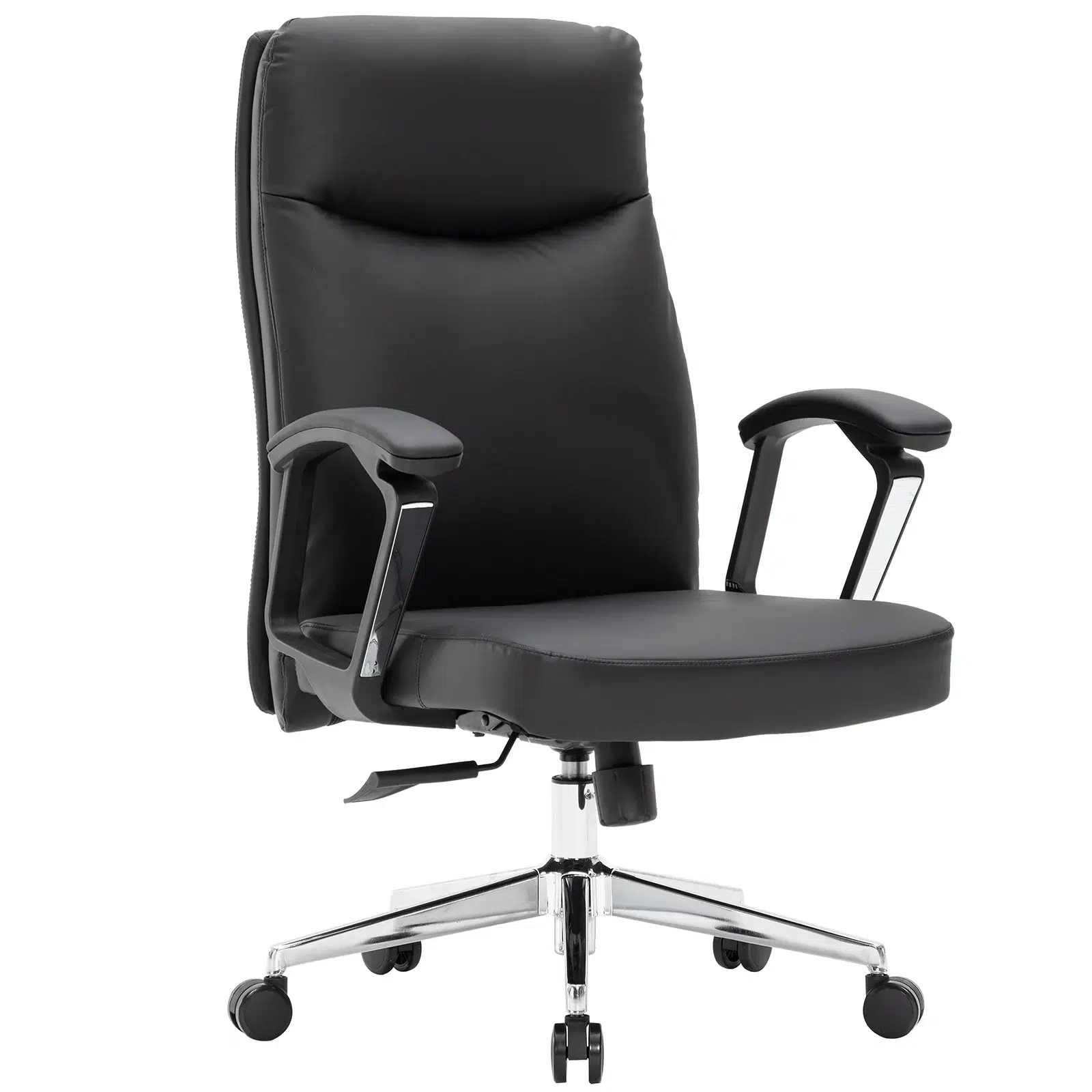 Meanwhile, the chair features a height-adjustable, tilt, and fixed mechanism. Therefore, users can set the seat level based on their desk height. The tilt lock mechanism rocks and locks the chair upright. Additionally, the tilt tension adjustment knob controls backward resistance. Padded arms provide simple arm support. Overall, this manager executive chair combines foam comfort, tilt control, and adjustable support for UAE office furniture use.