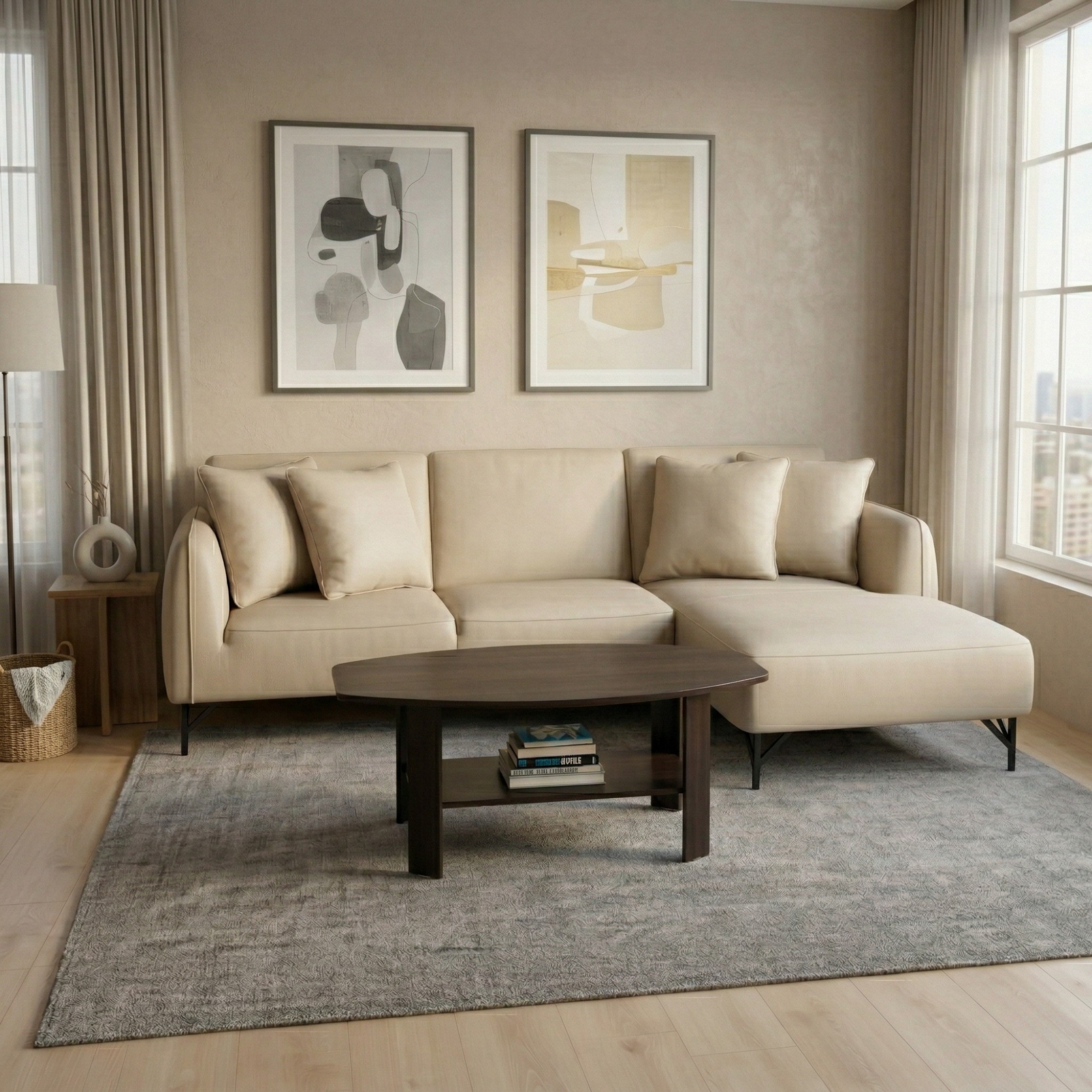 Overall, the Modern Corner Sofa with Free Coffee Table in Dubai, UAE, offers a compact and practical furniture solution for modern living spaces. Its corner design helps optimize space while providing comfortable seating. Moreover, this modern corner sofa with a free coffee table combines functionality and simplicity in one complete setup.