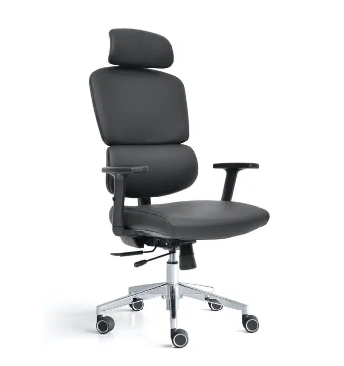 Overall, the Modern Executive Chair is designed for professional office comfort in Dubai and across the UAE. The high back design provides full upper body support. Therefore, it helps users maintain better posture during long work hours. The office chiar black leather finish gives a clean and modern look. As a result, it suits executive cabins and contemporary office spaces.