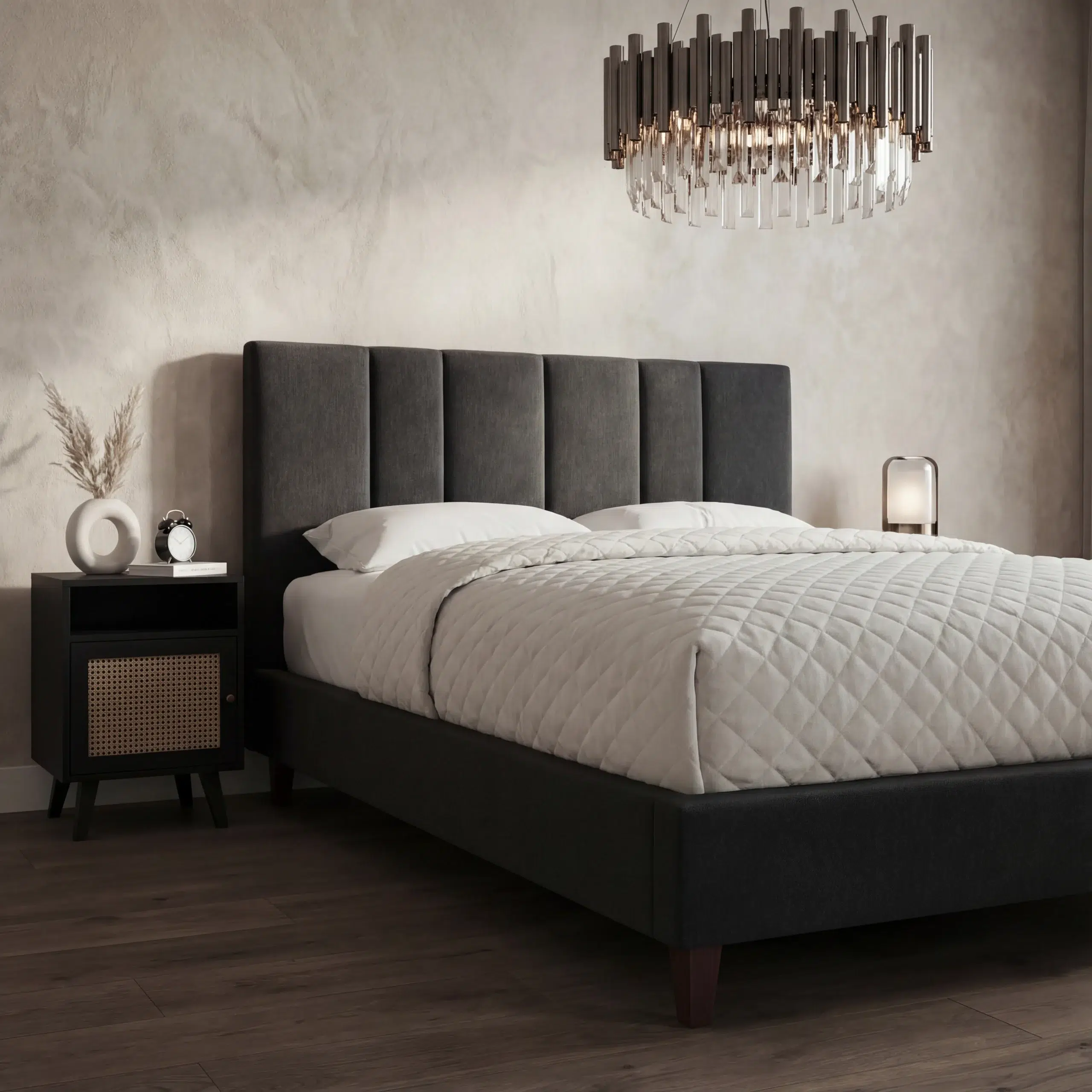 Bed Frame: Queen 160 × 200 cm , upholstered headboard, dark fabric finish