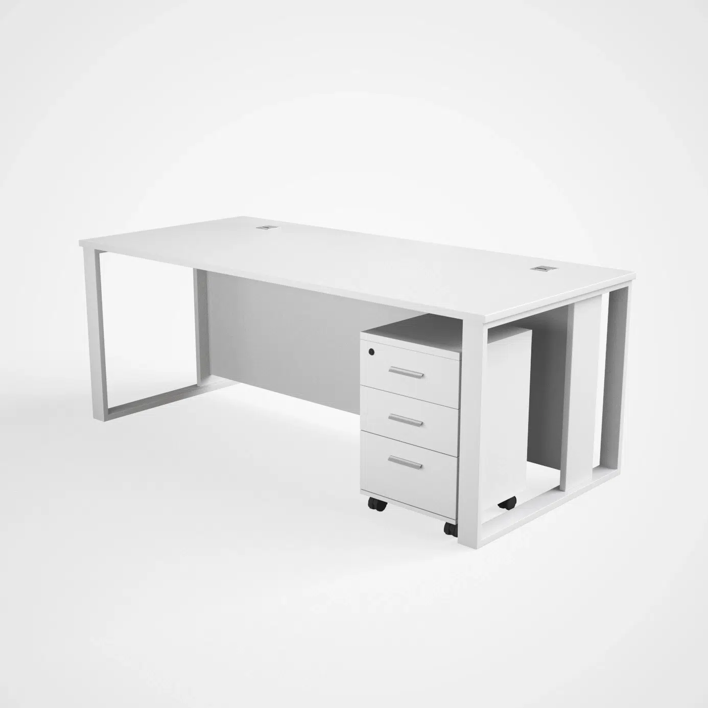 Additionally, the workstation features a 25mm thick tabletop that supports regular office use. The White finish gives the desk a simple and professional appearance. Meanwhile, the grey powder-coated metal legs provide strong support and long-term durability.