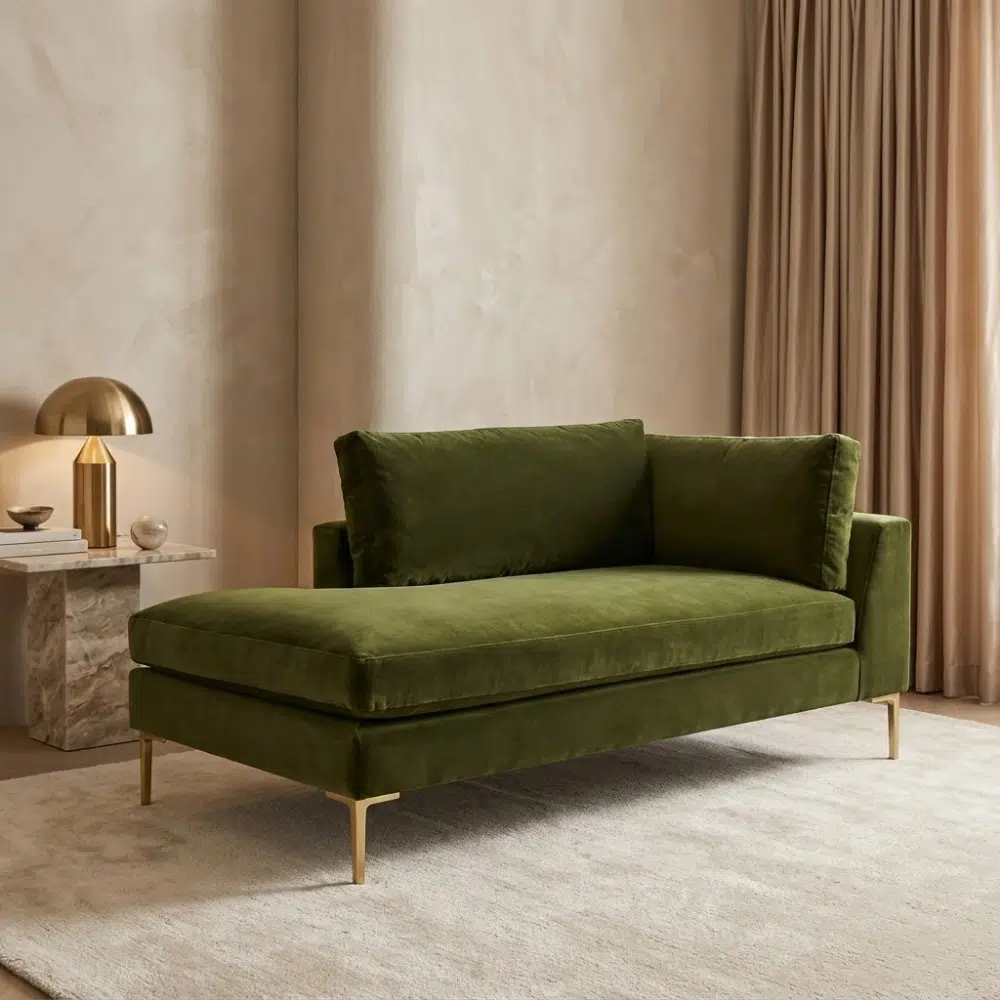 Olive Luxe Modern Velvet Chaise Lounge – Luxury Seating | Dubai UAE