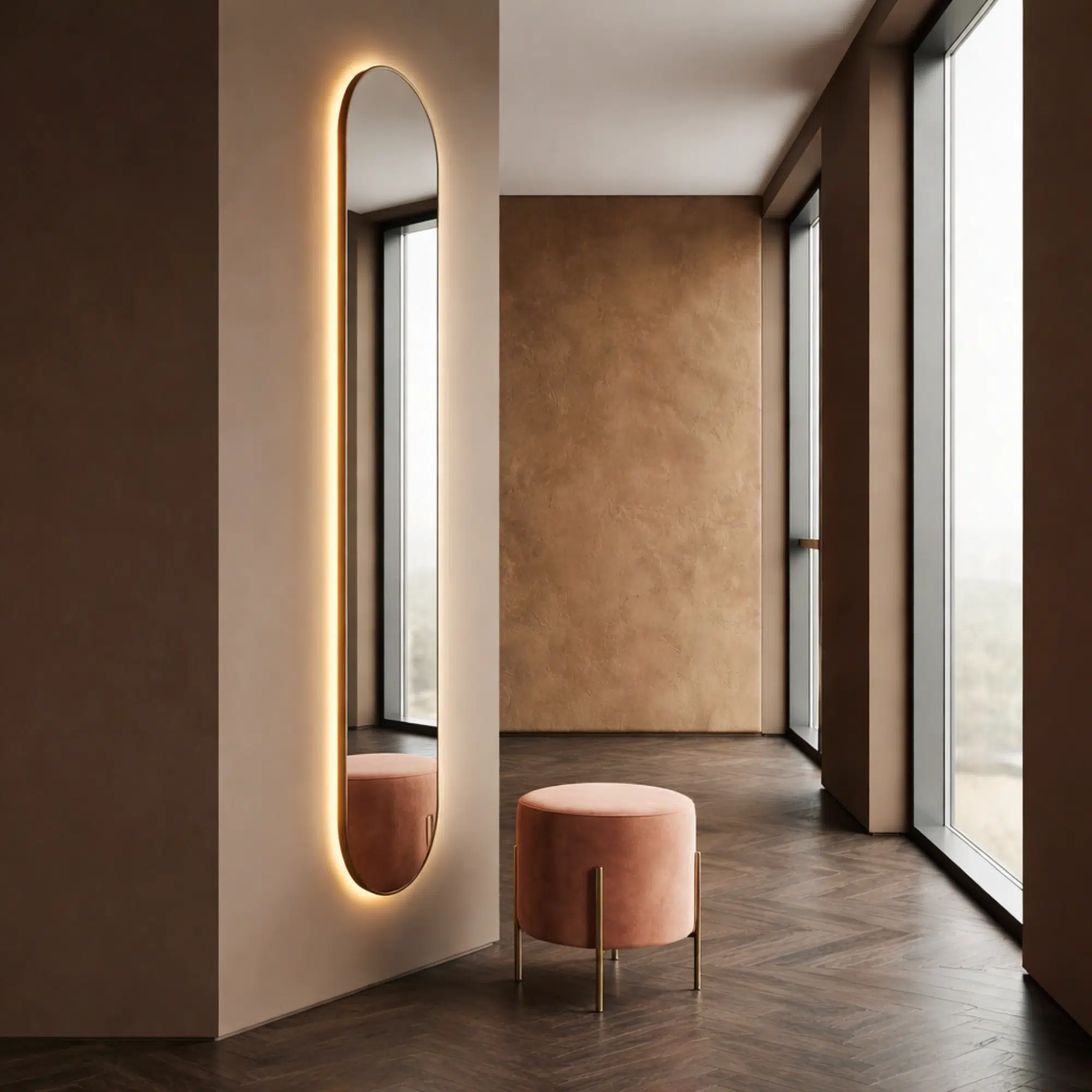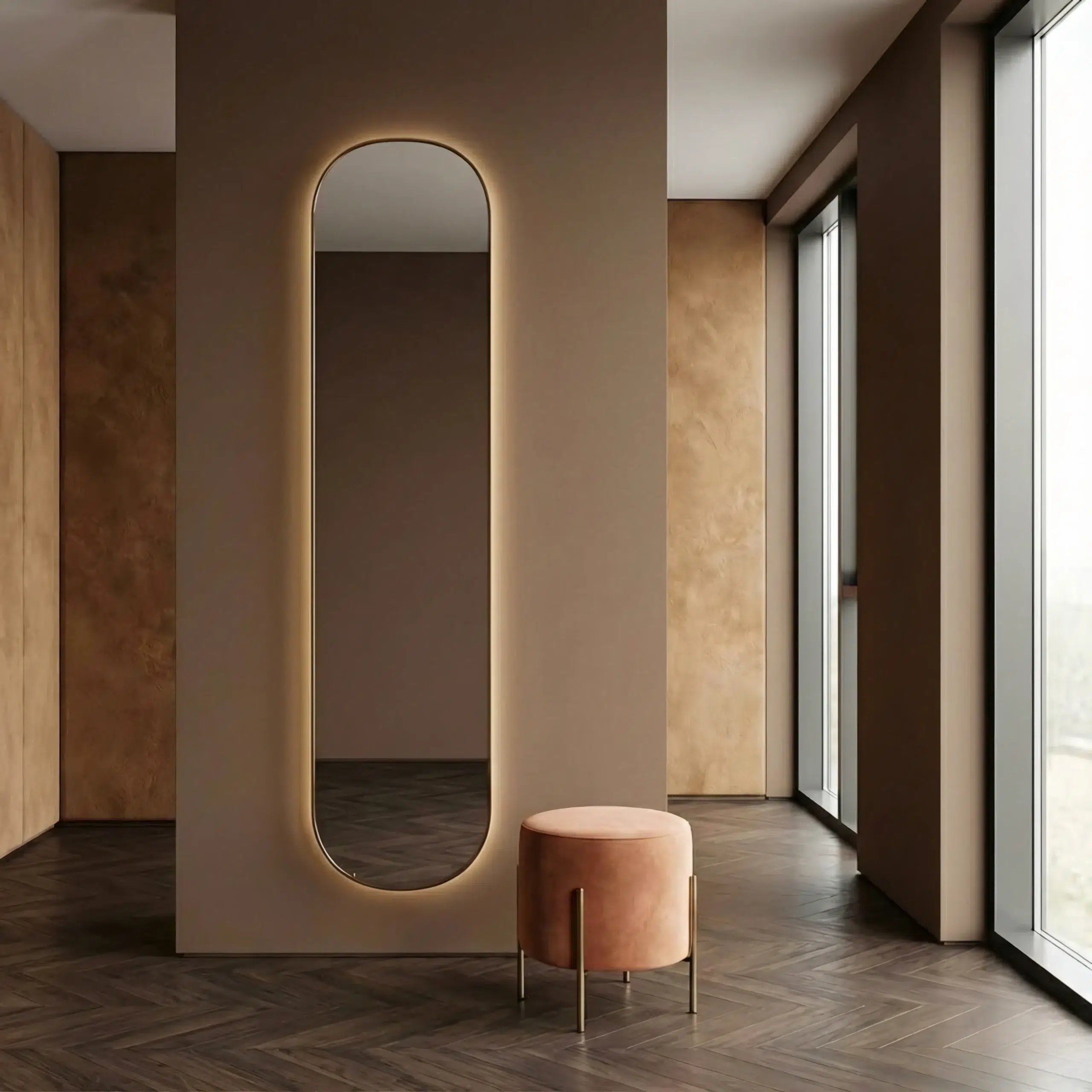 Overall, the Orlune Modern Wall Mirror is designed to add vertical elegance to modern interiors. Moreover, its slim and tall form creates a clean visual flow on the wall. Additionally, the arched shape softens straight architectural lines while keeping a modern look. As a result, the mirror fits naturally into contemporary residential spaces.