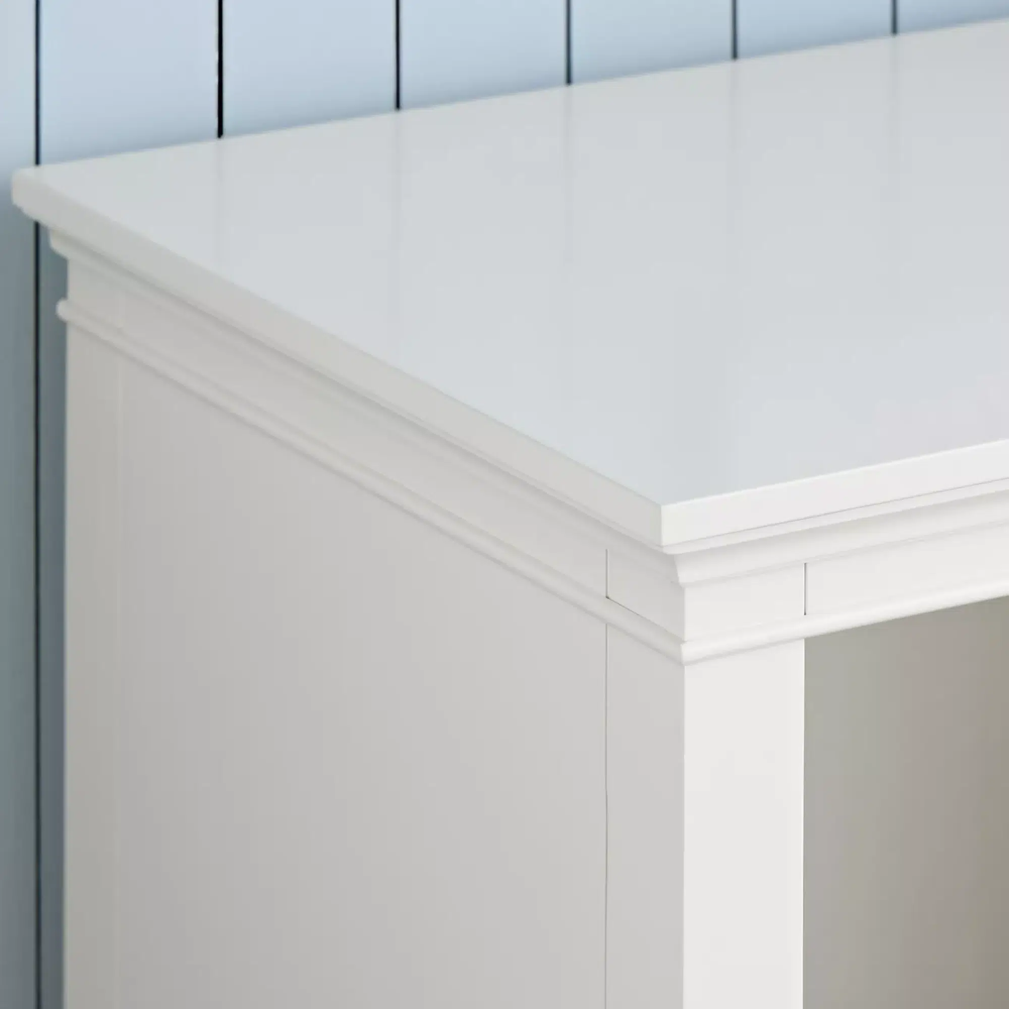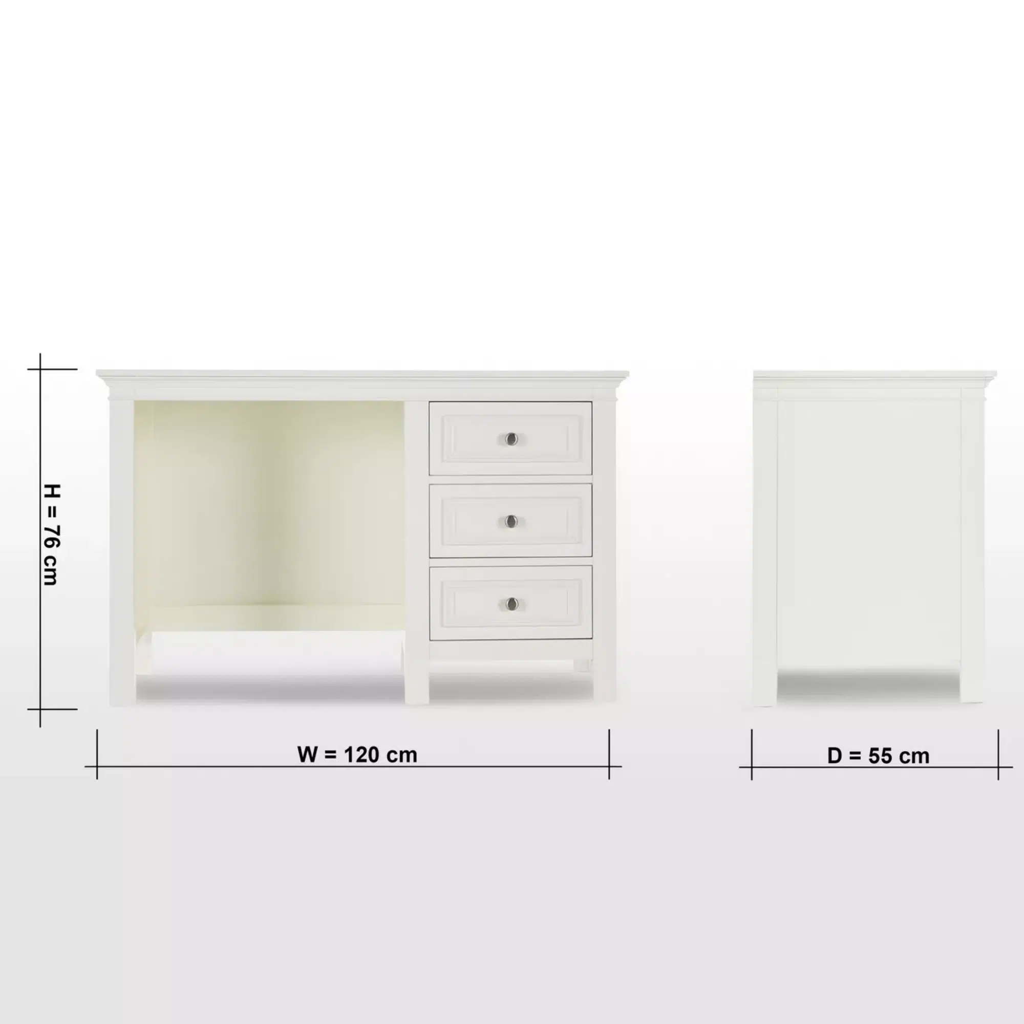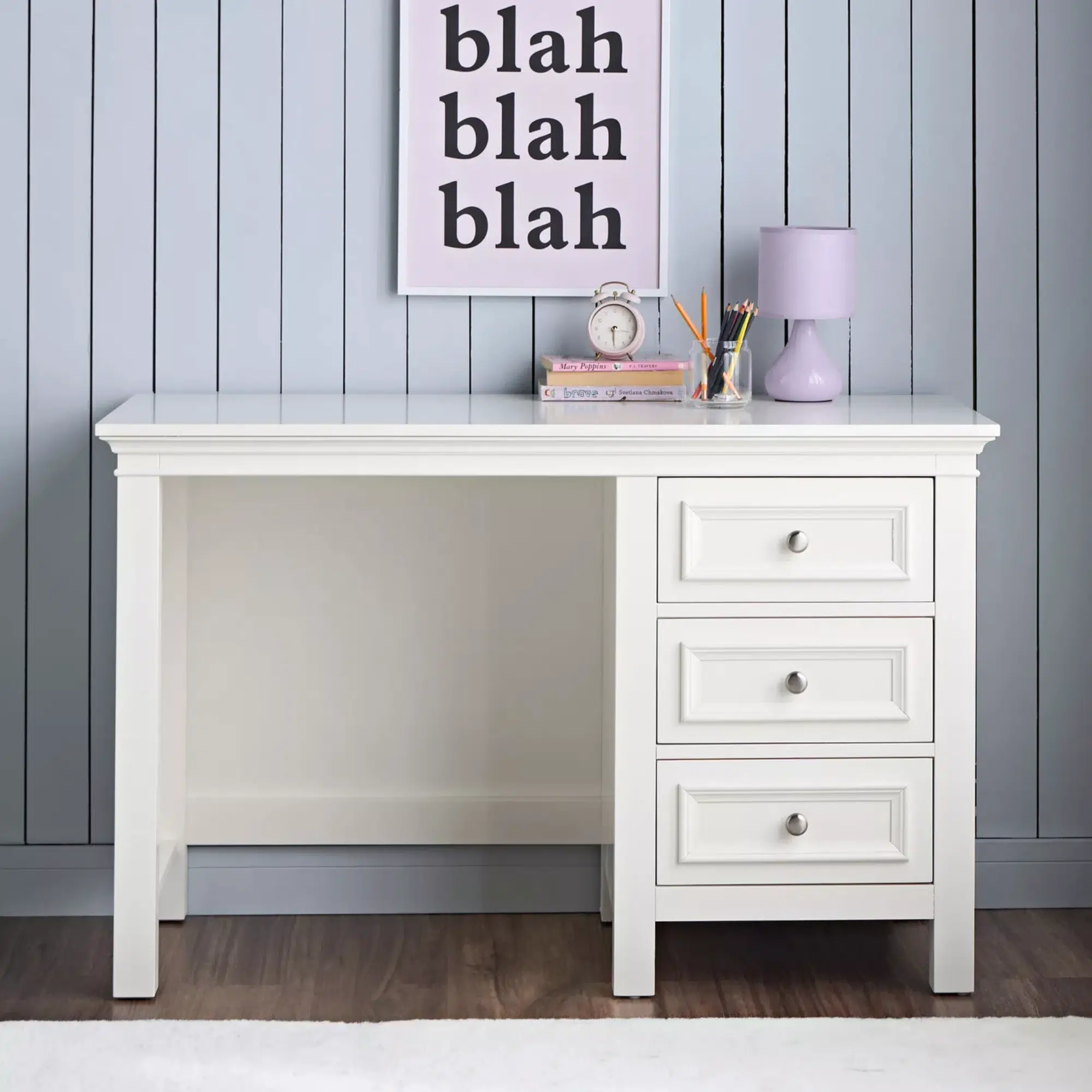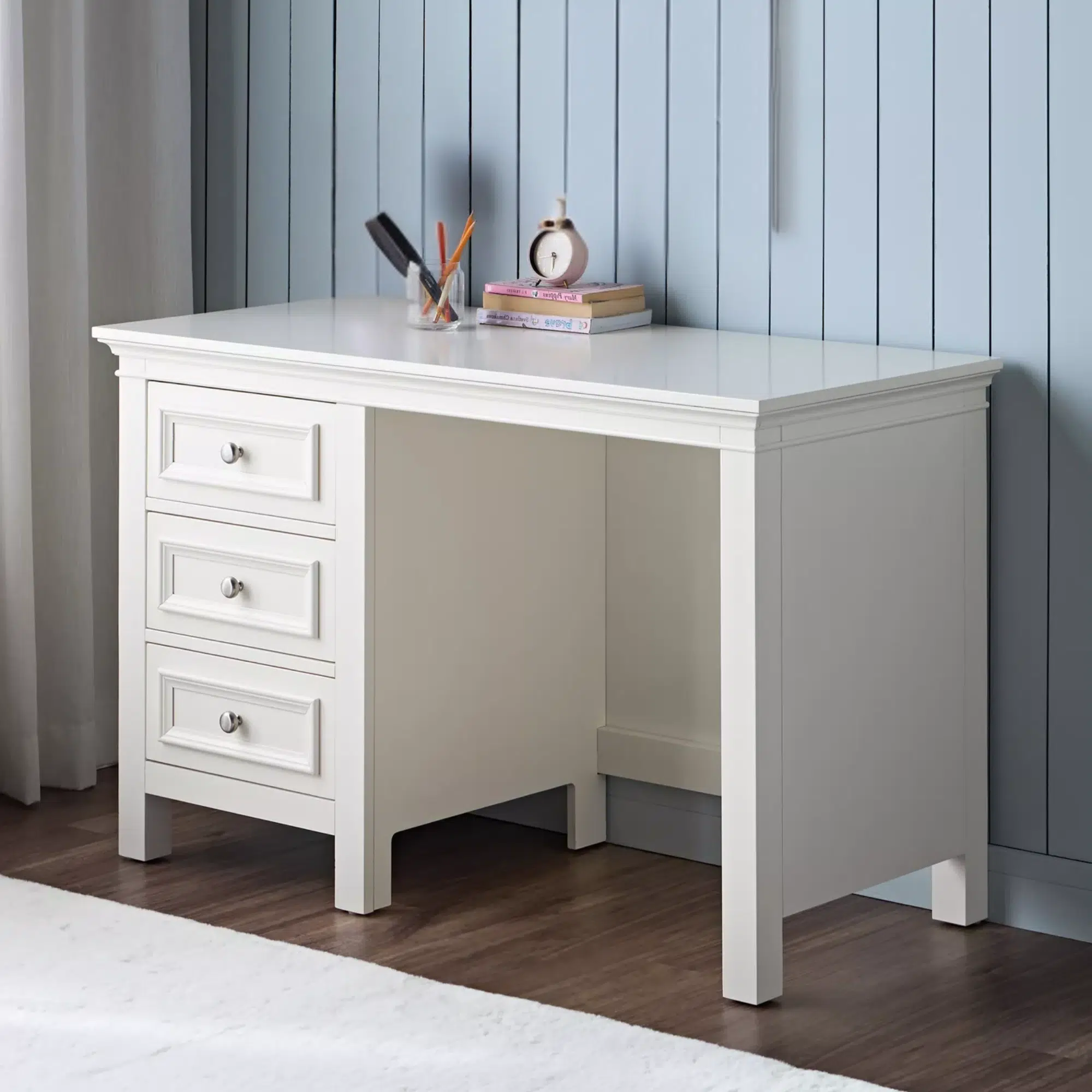 Moreover, the desk features a modern profile supported by sleek legs that create a light and tidy look. This structure keeps the workspace stable while maintaining a simple design suitable for children’s furniture. The smooth painted surface also helps the desk integrate well with other bedroom or study room pieces.