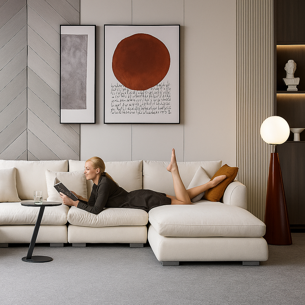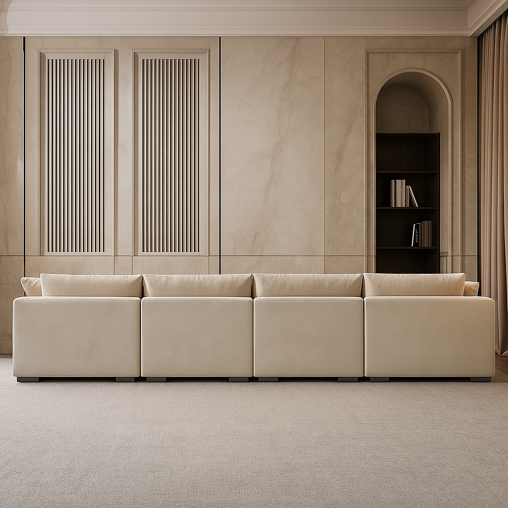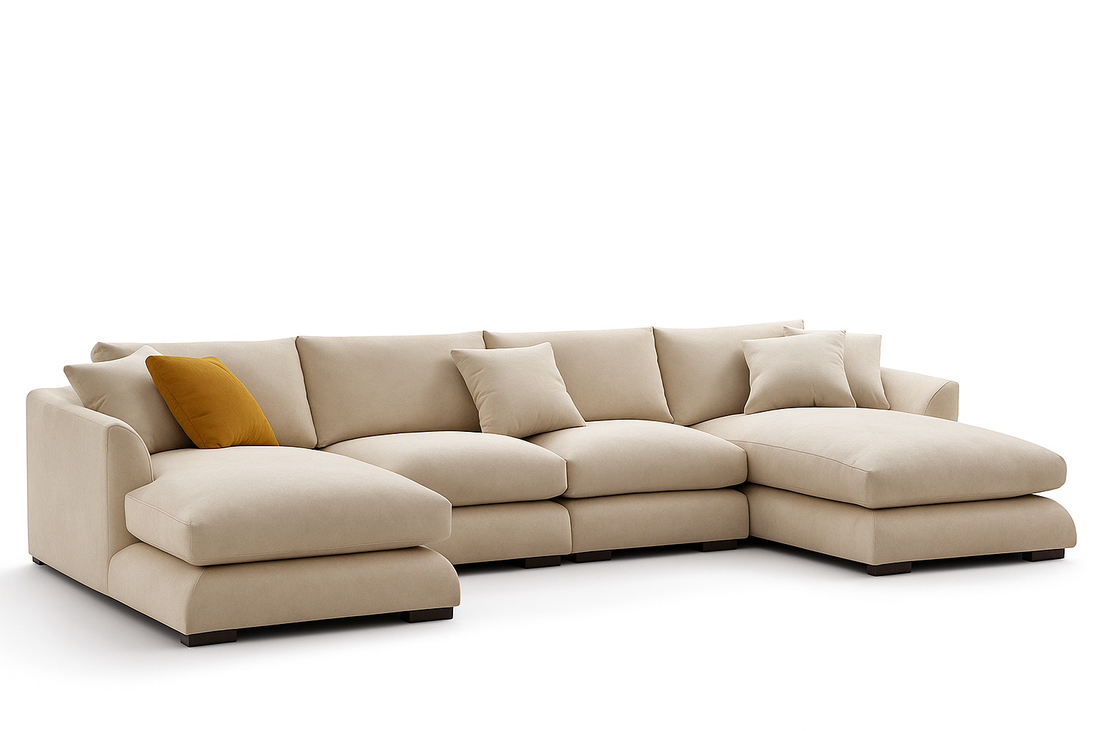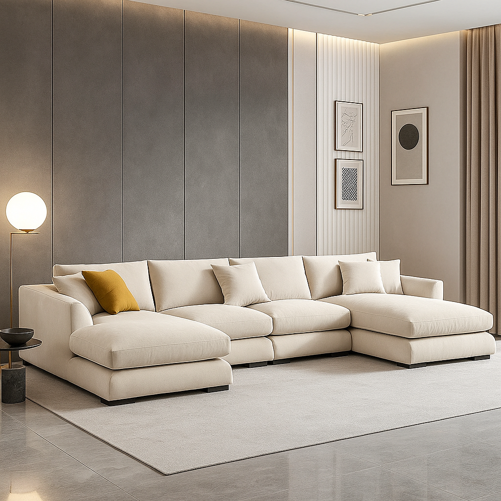 Experience modern luxury with the Feather U-Sectional Sofa a masterpiece of comfort and minimalist elegance. Designed in soothing beige tones, it features deep feather-soft cushions, premium upholstery, and a spacious U-shaped design for family and guests. Built with multi-layer comfort technology and high-density fabric, the Feather Sofa blends timeless style, durability, and everyday practicality perfect for any modern home.